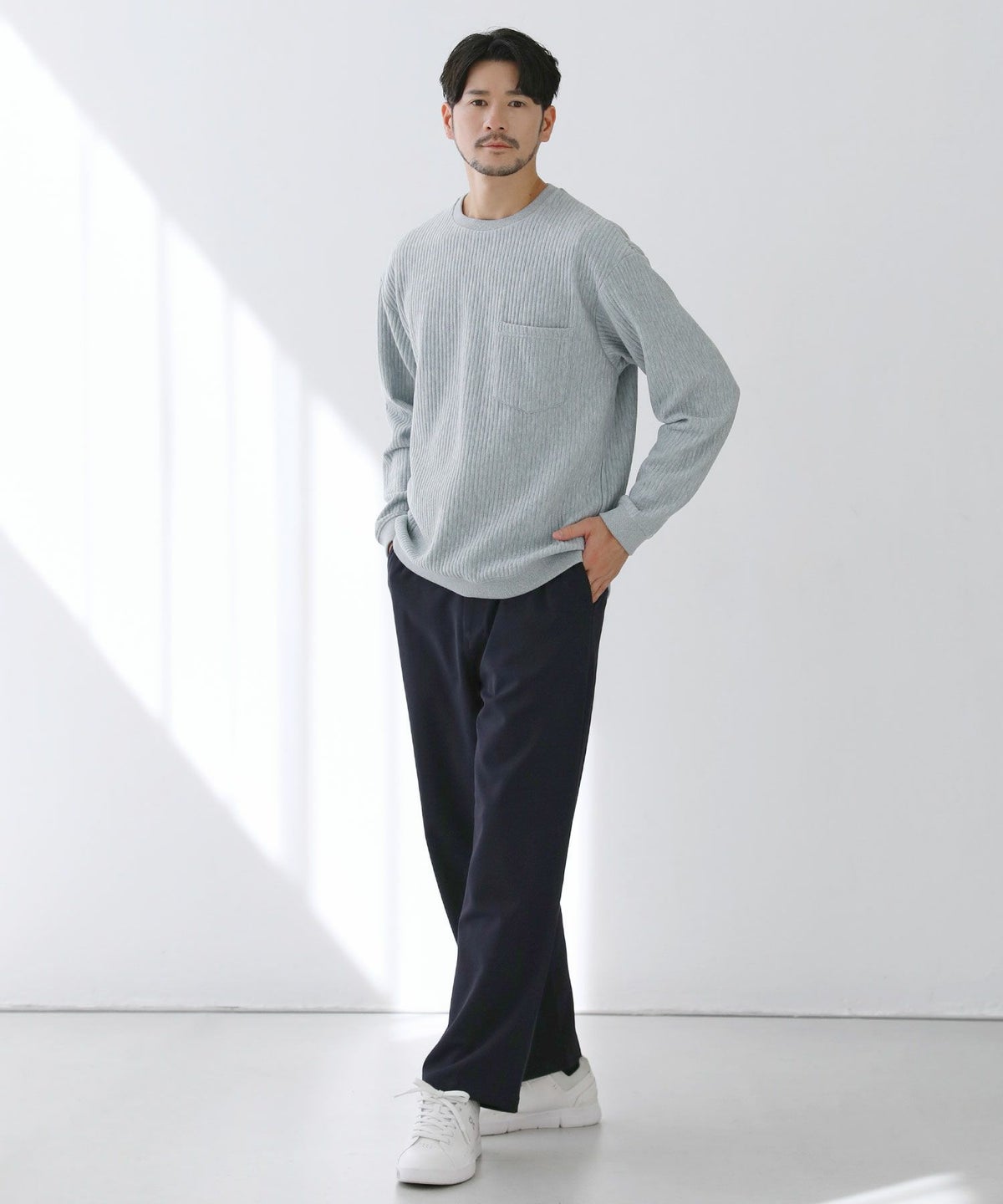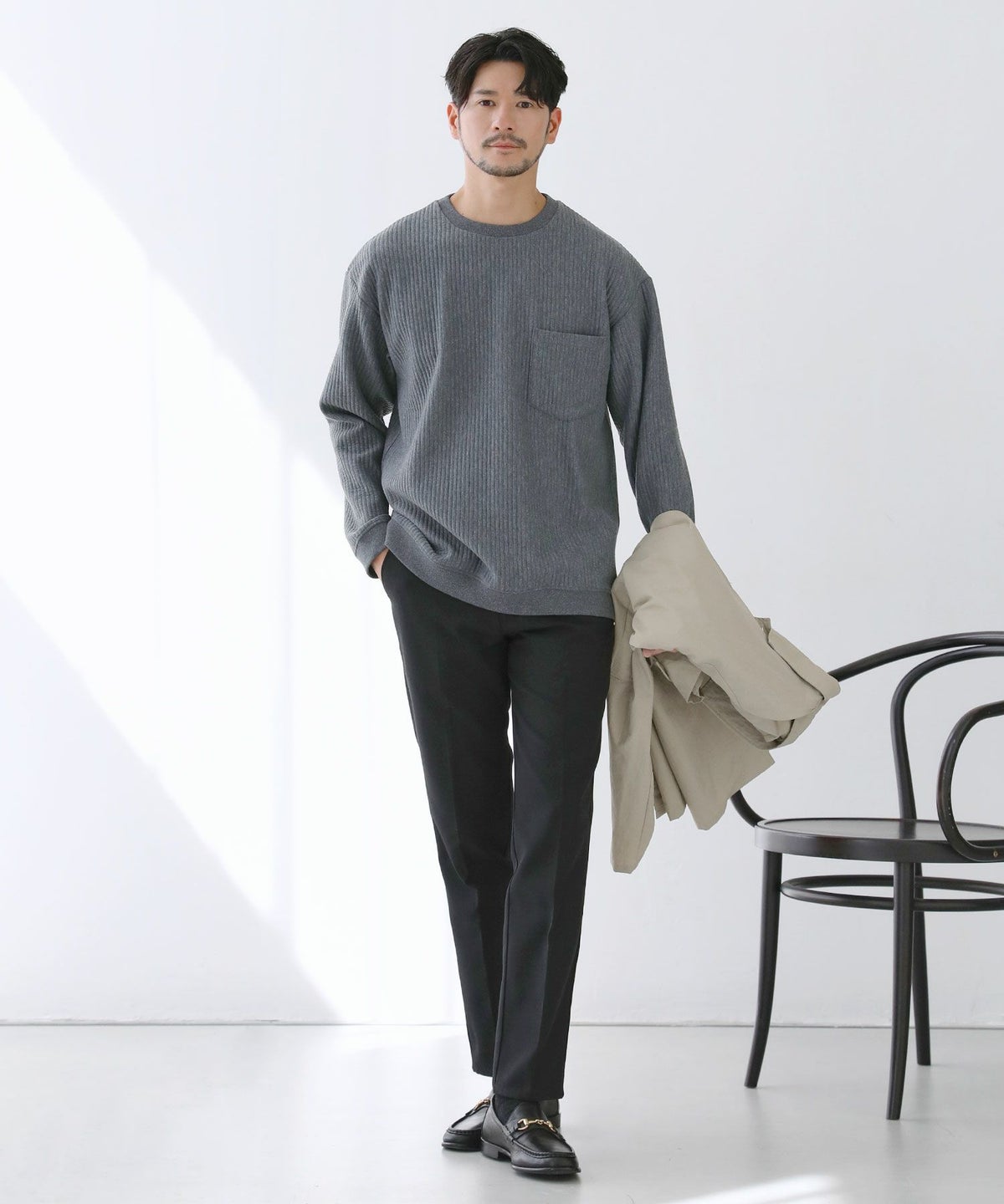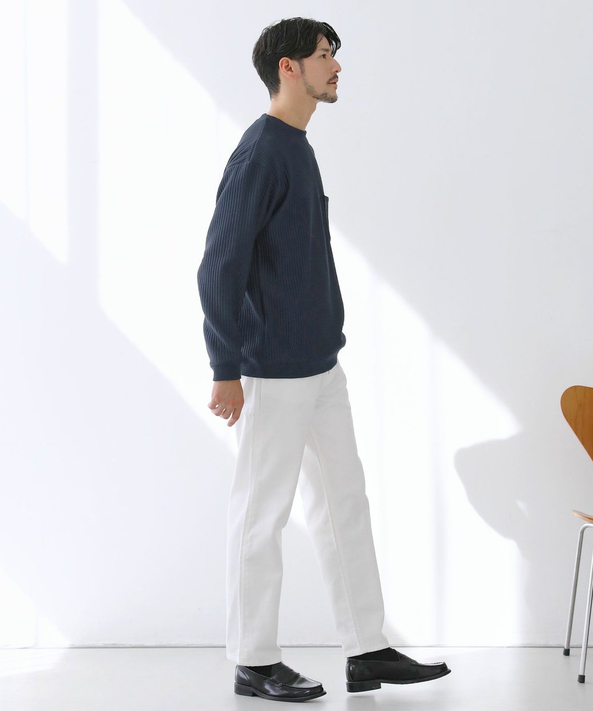 サイズは、身幅や腕周りにゆとりを持たせつつもあくまでルーズになりすぎないよう調整。カジュアルなデニムからキレイめなスラックスまで幅広いアイテムと合わせてお召しいただけます。