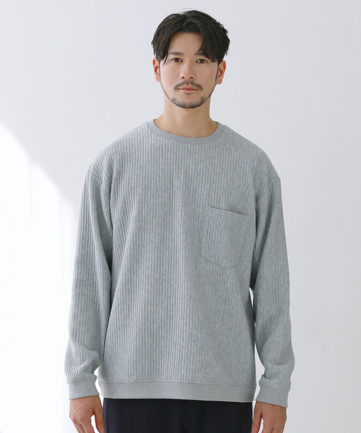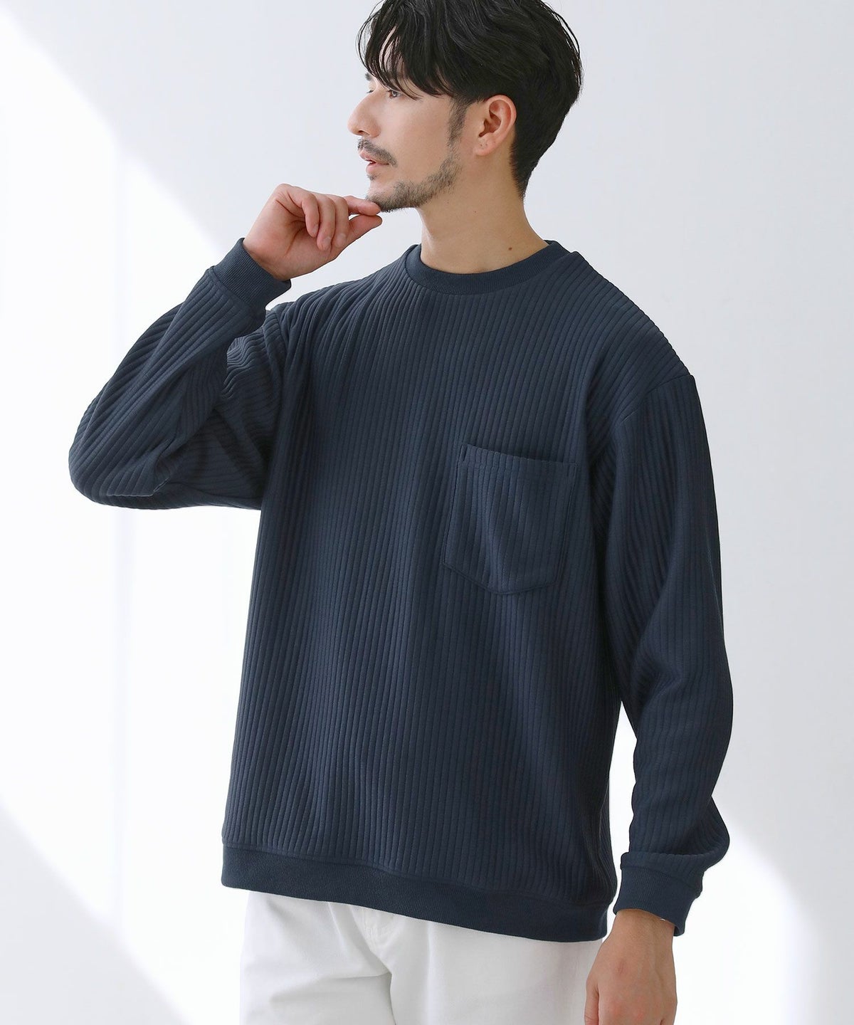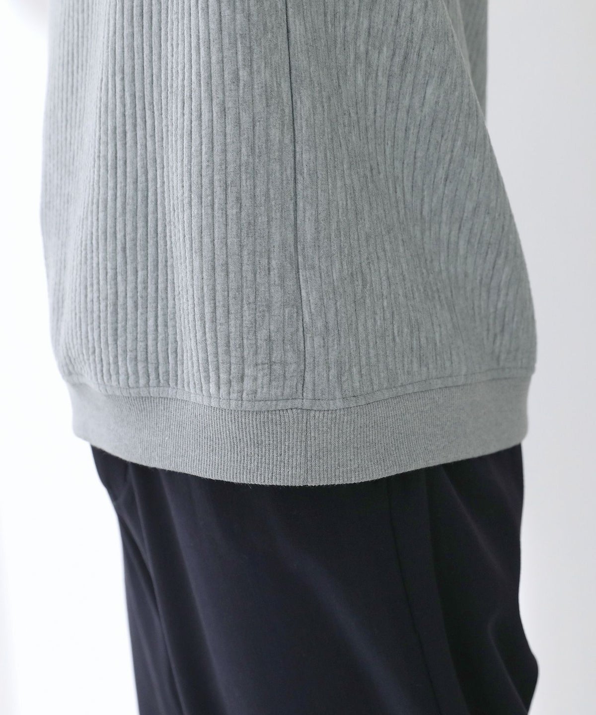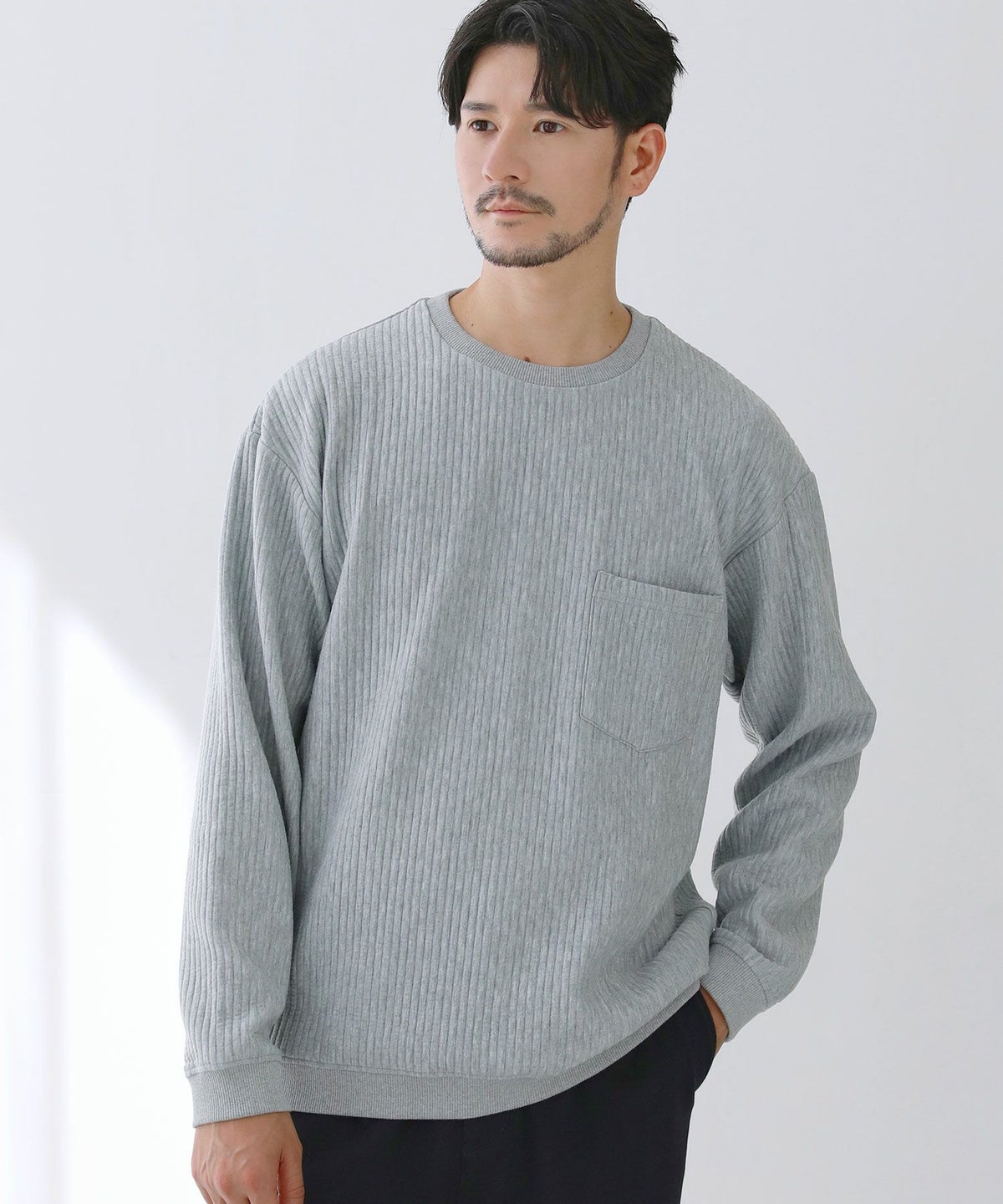 キルトリブクルーネック長袖スウェット