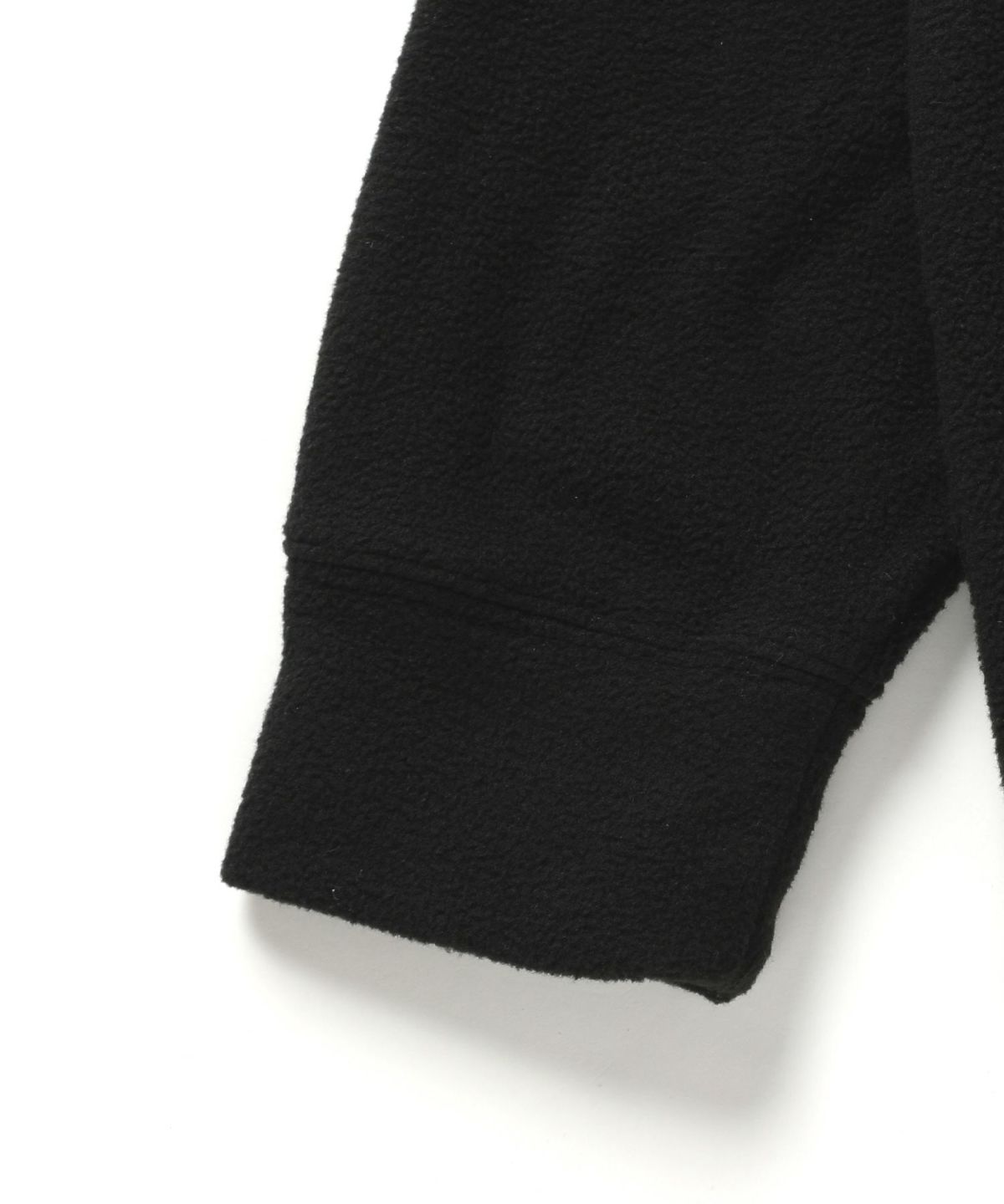 生地にはポリエステル100%フリースを採用しました。ふんわり起毛した柔らかい生地が特徴で素肌を優しく包み込みます。起毛した繊維の間に空気の層ができるため、体から出る熱を逃しません。シワにもなりにくく、軽量性と保温性を併せ持ったデイリー向けの素材です。