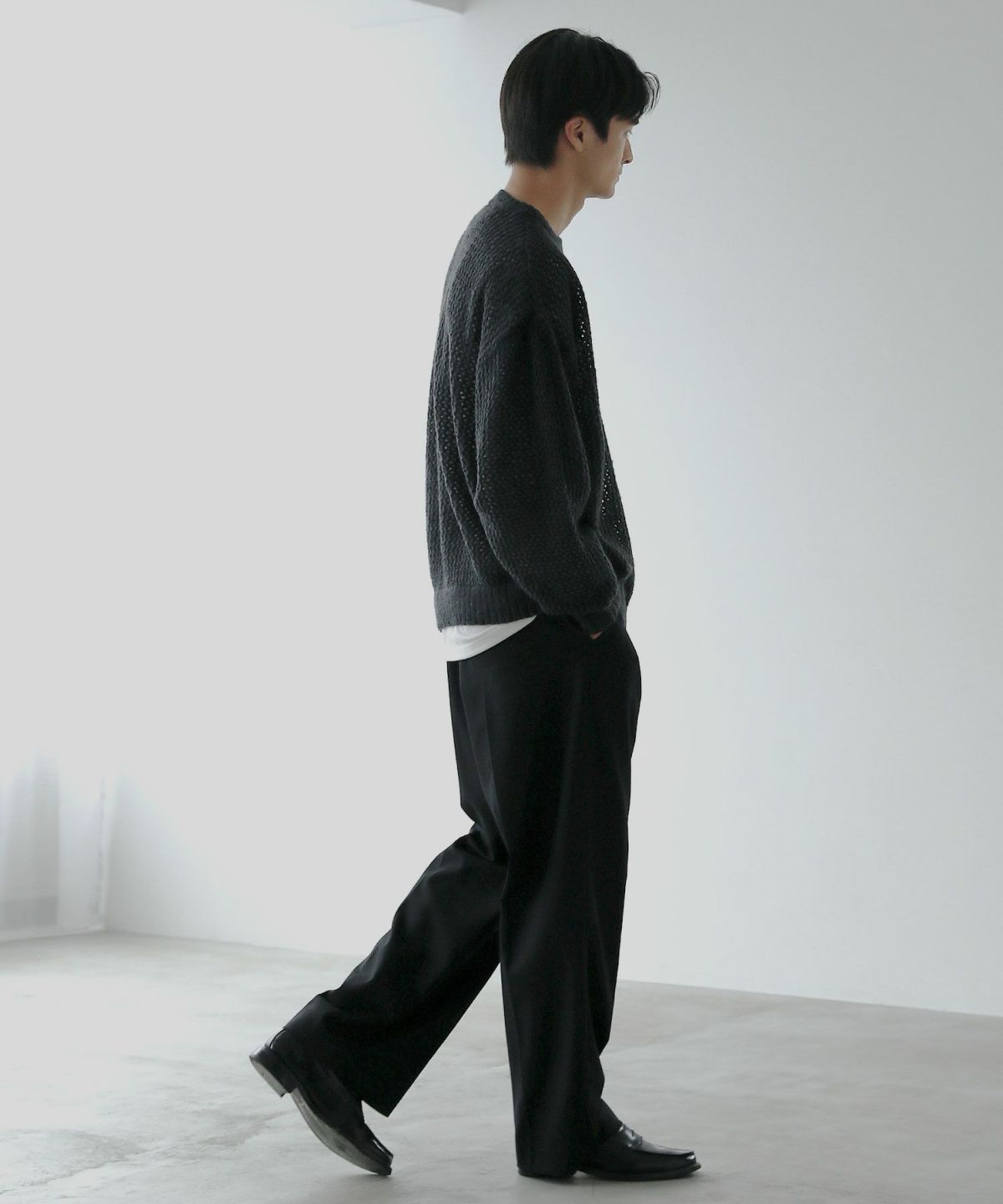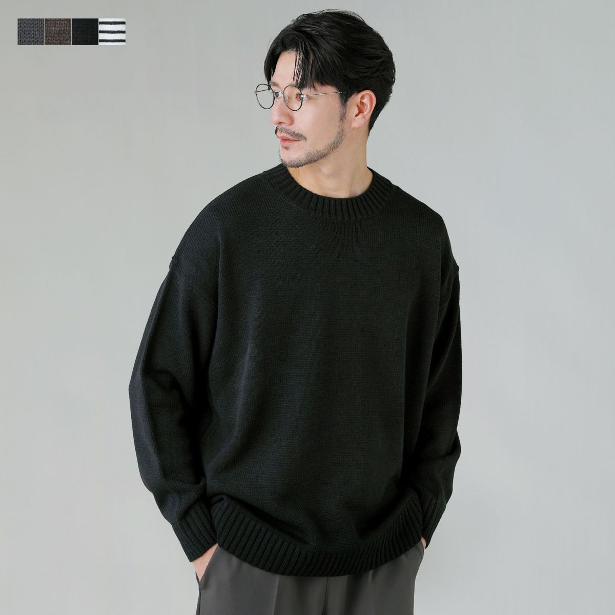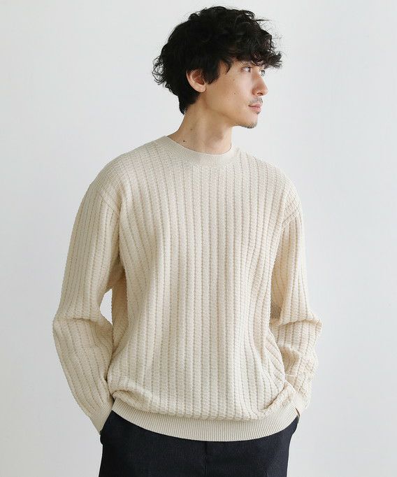 セミワイドシルエットケーブル編みクルーネックニット