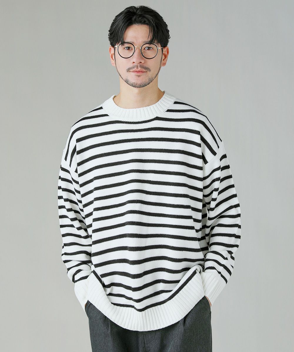 ウォッシャブル5G天竺ロングオーバーサイズクルーネックニット