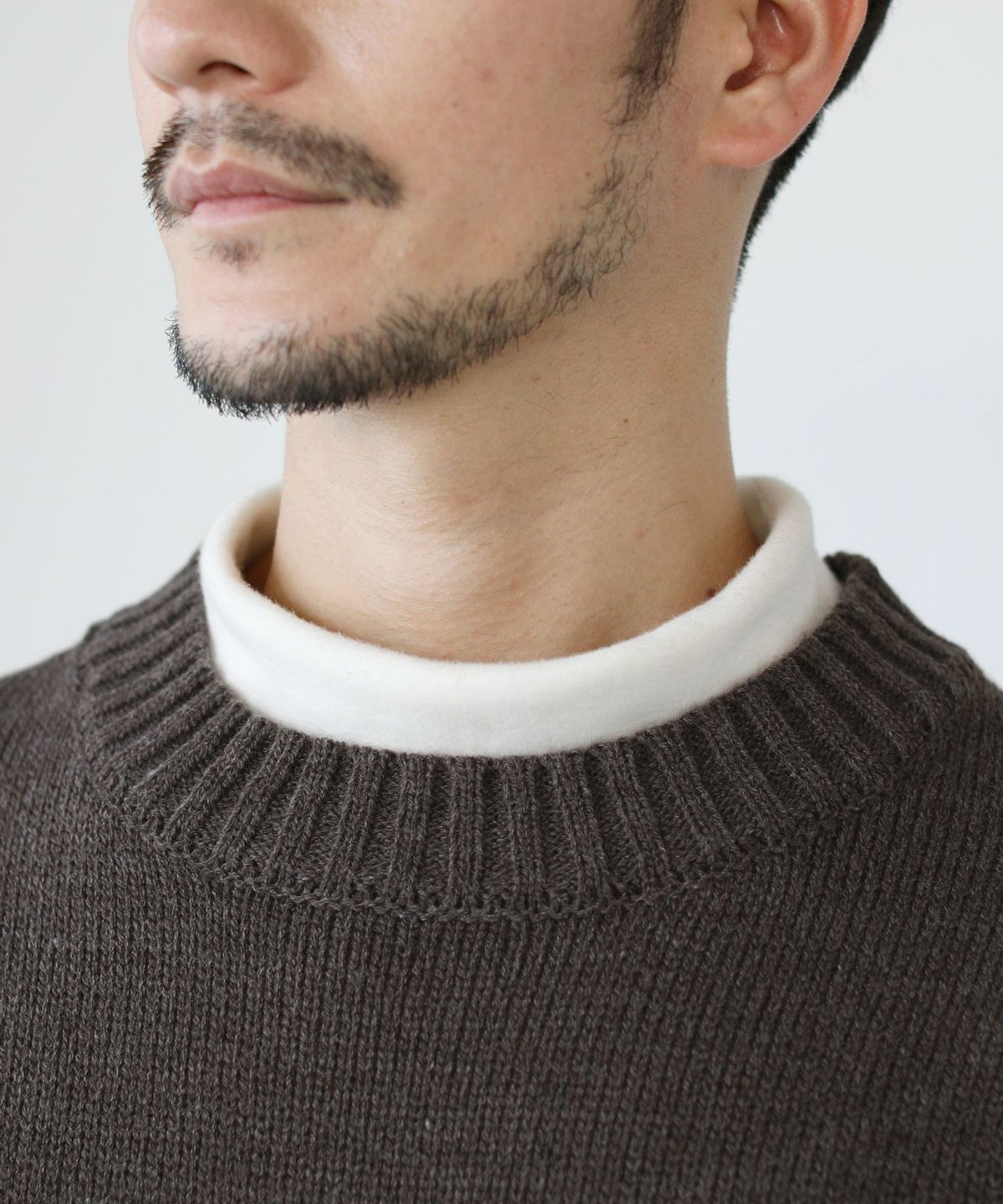 12Gウール混カシミヤタッチモックネックニット