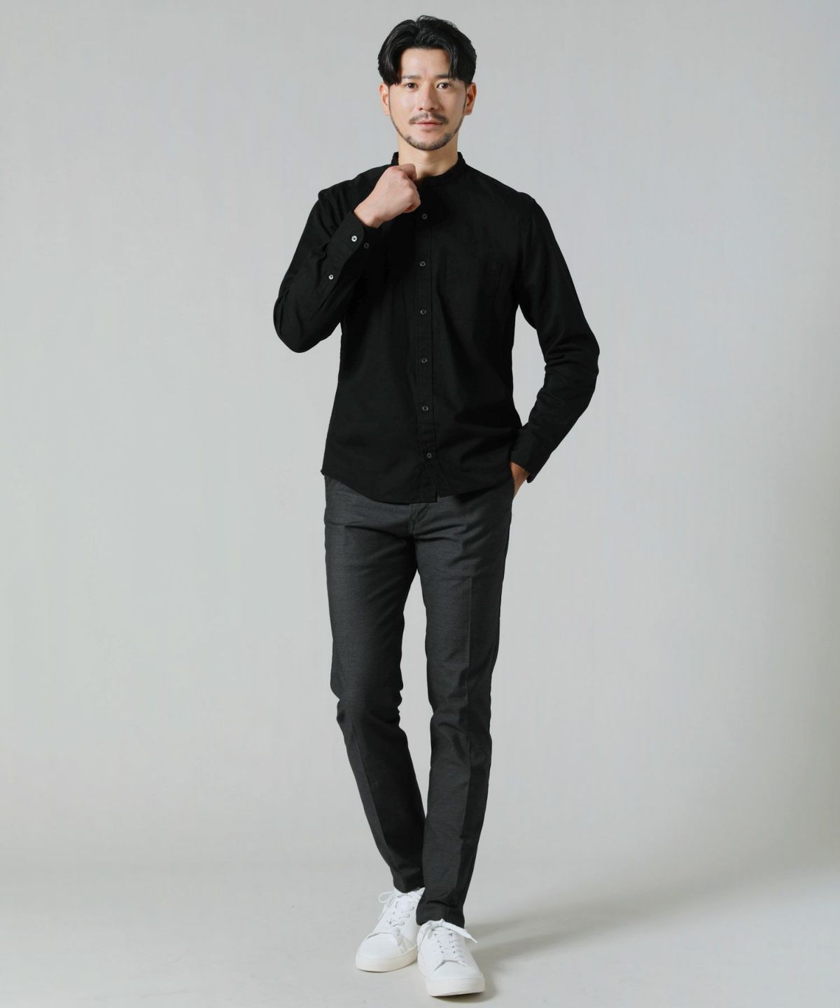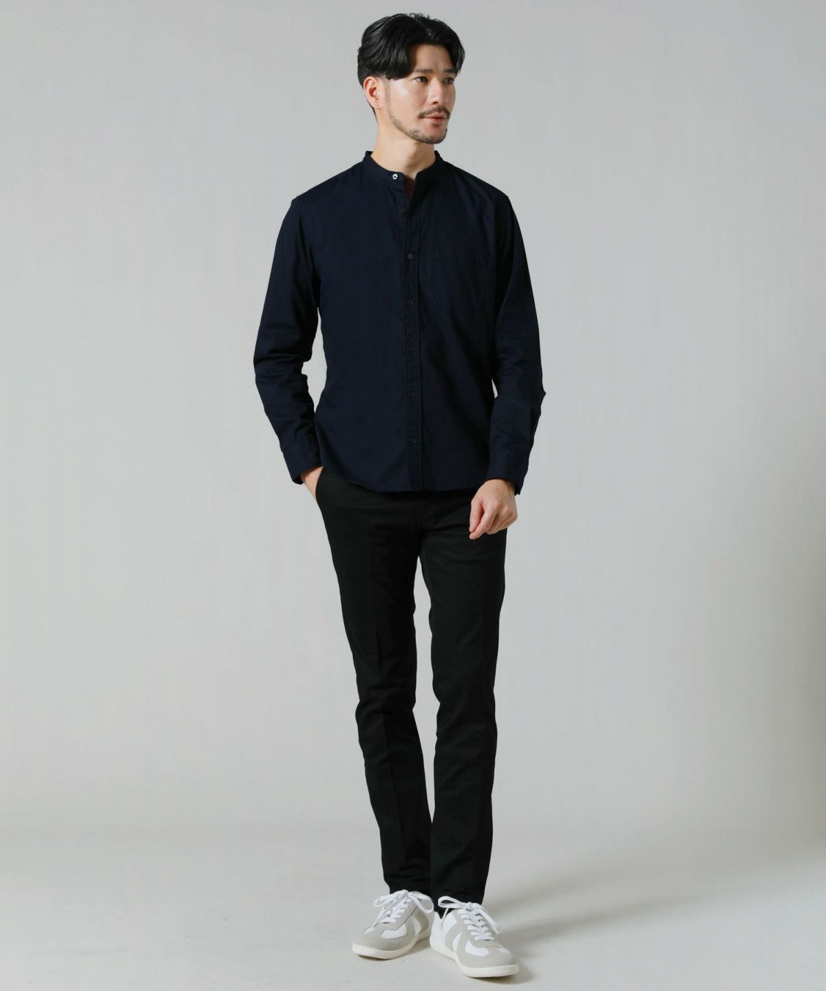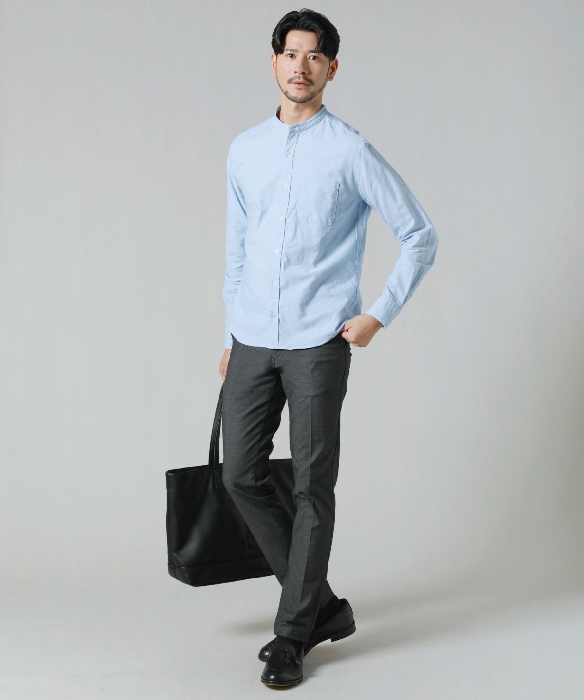 日本製オックスバンドカラー長袖シャツ