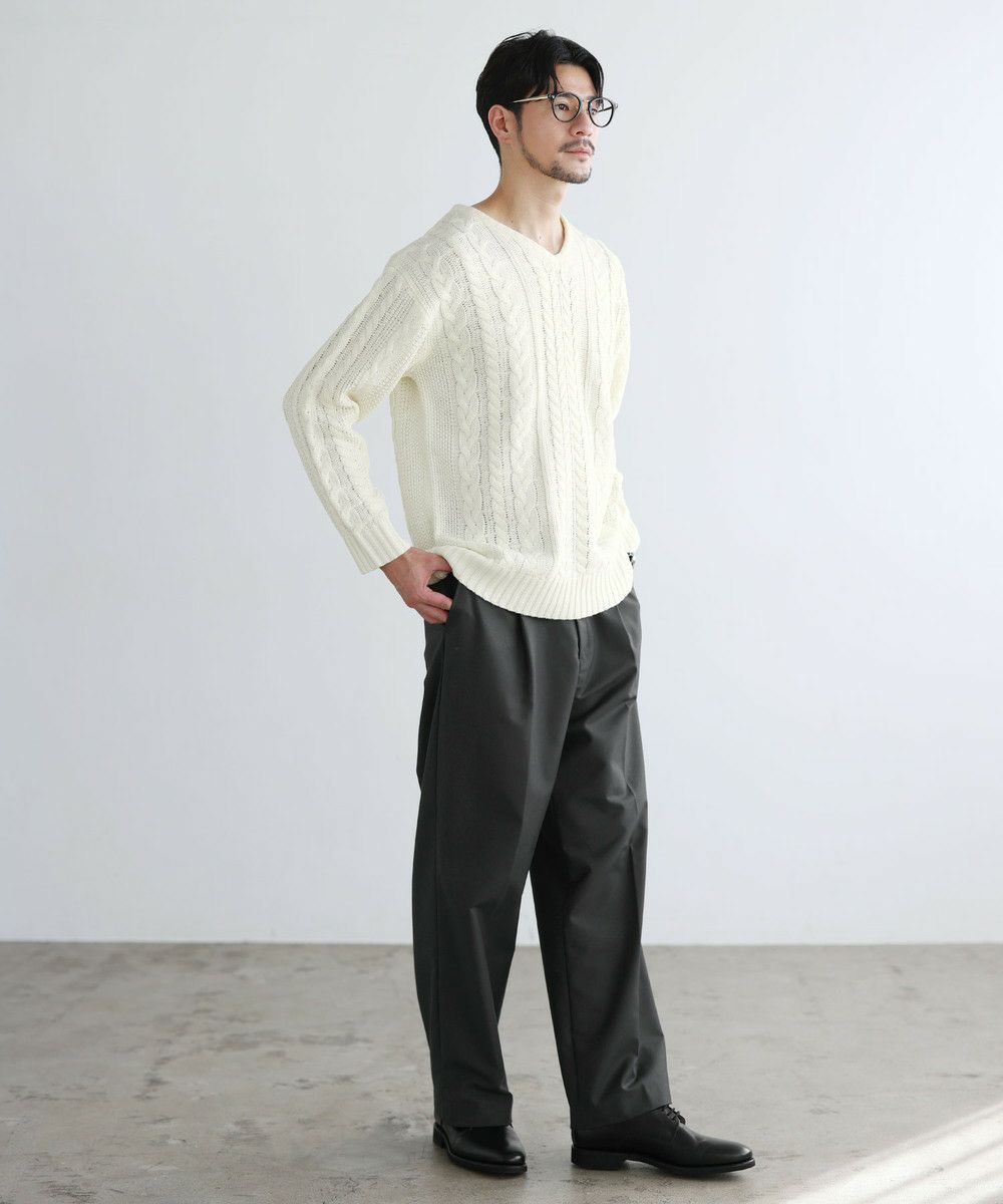 セミワイドシルエットケーブル編みVネックニット