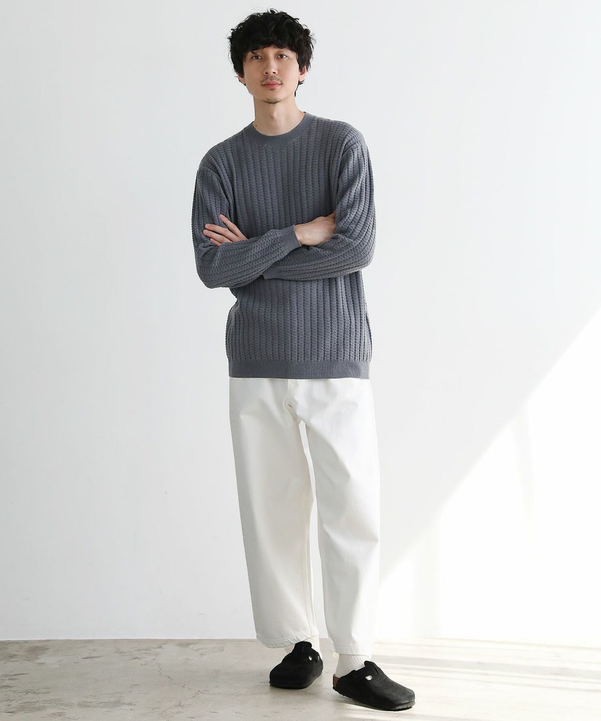 4WAYストレッチウォッシャブルリブ編み長袖クルーネックニット