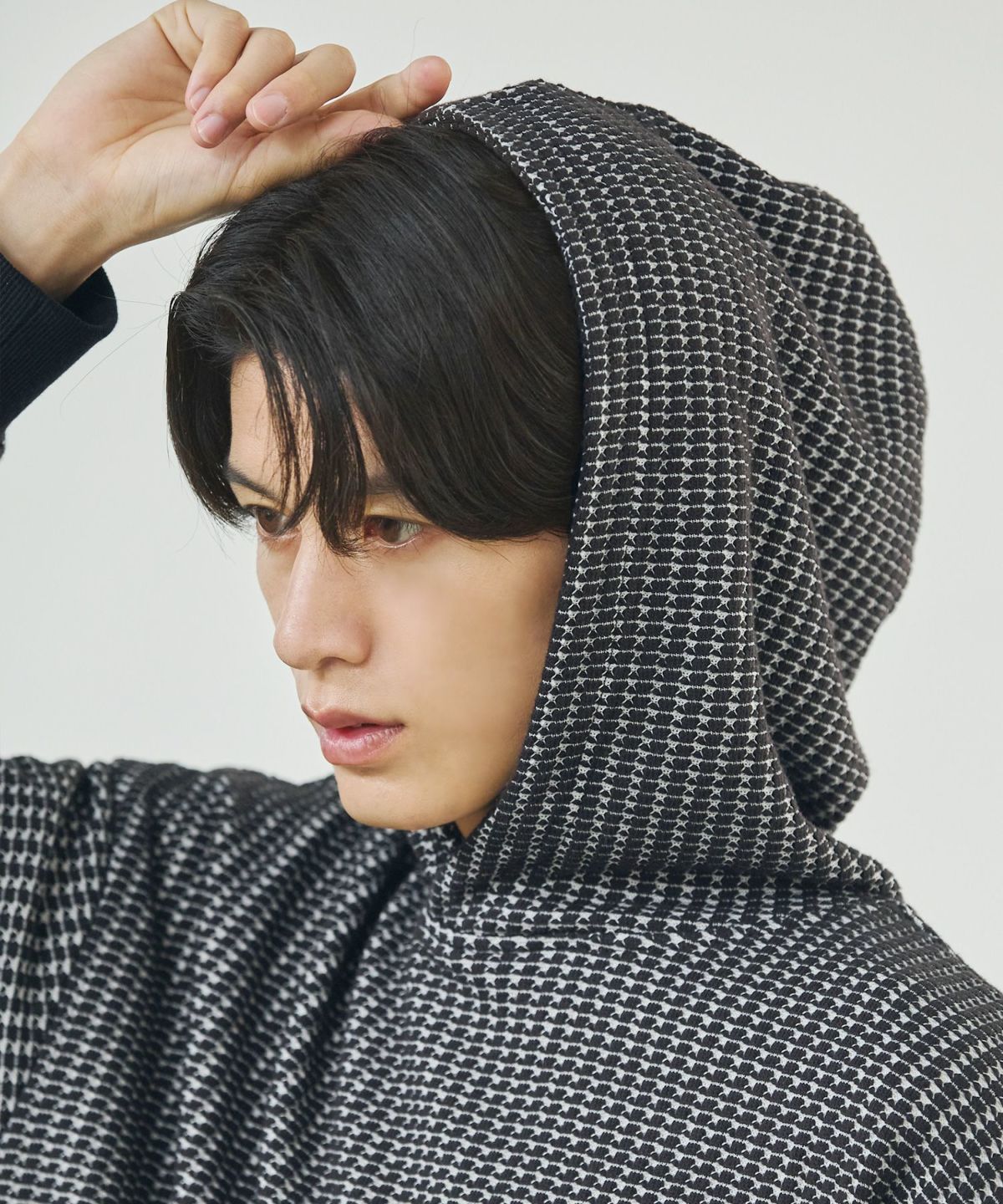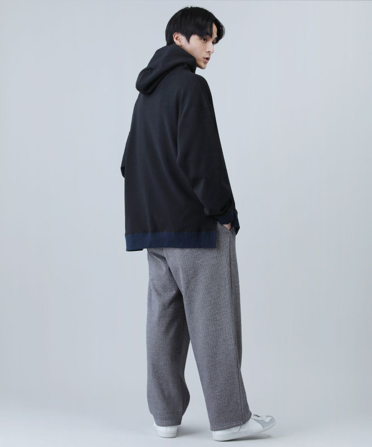 ヘリンボーンダブルフェイスクルーネック長袖スウェット