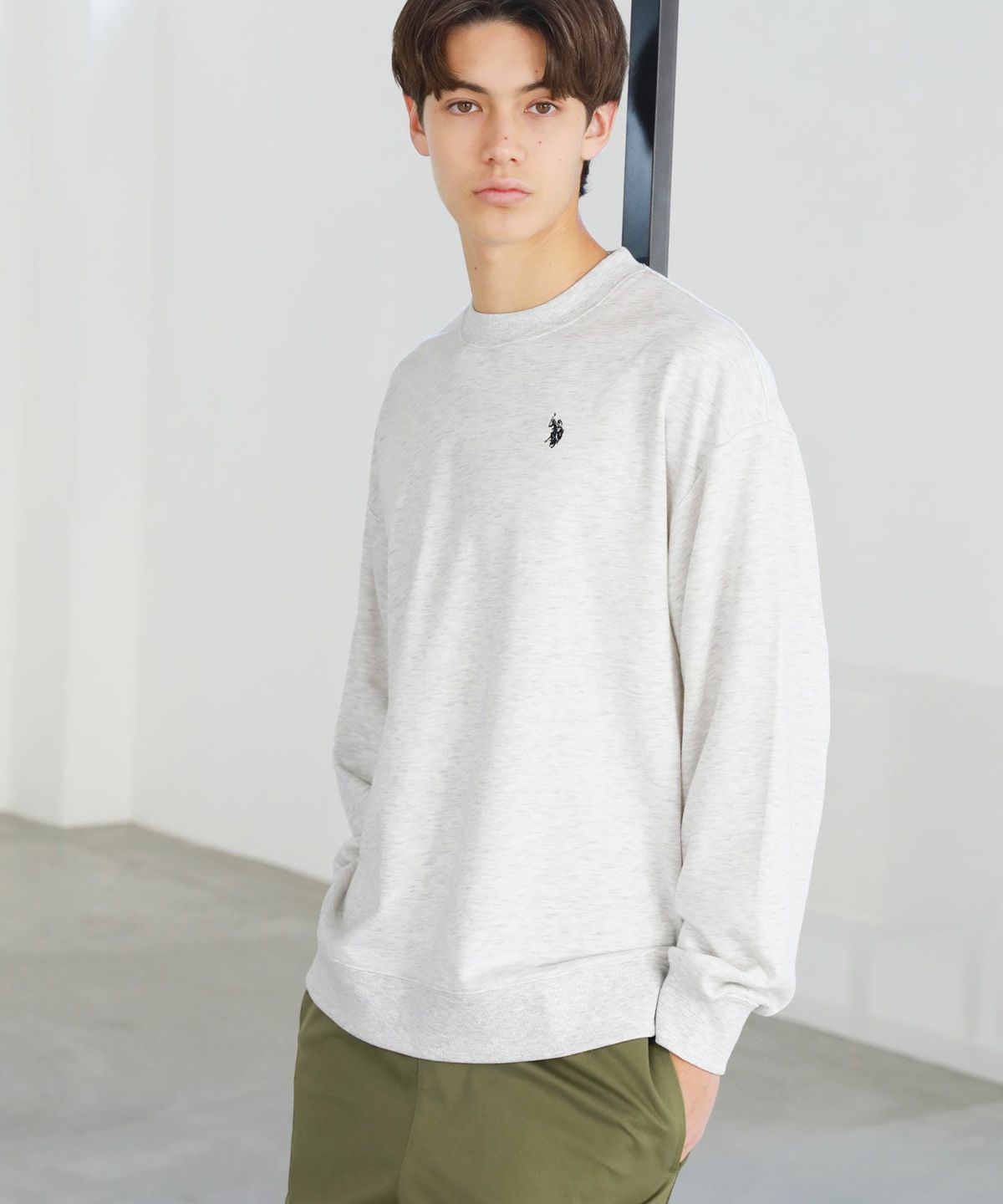 裏毛ワンポイントロゴクルーネックスウェット配色
