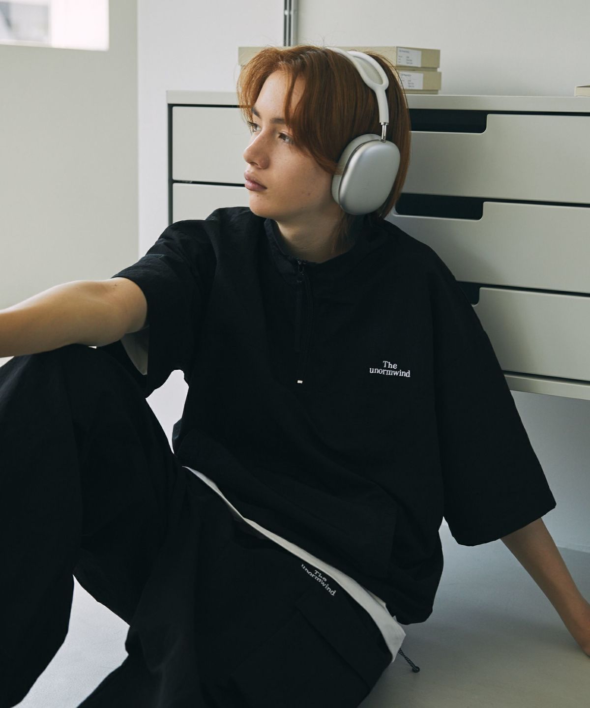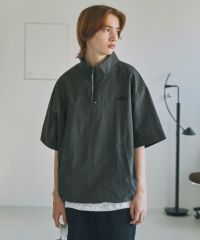 【セットアップ対応】 刺繍ロゴワッシャーナイロン半袖ハーフジップ裾ドローコード