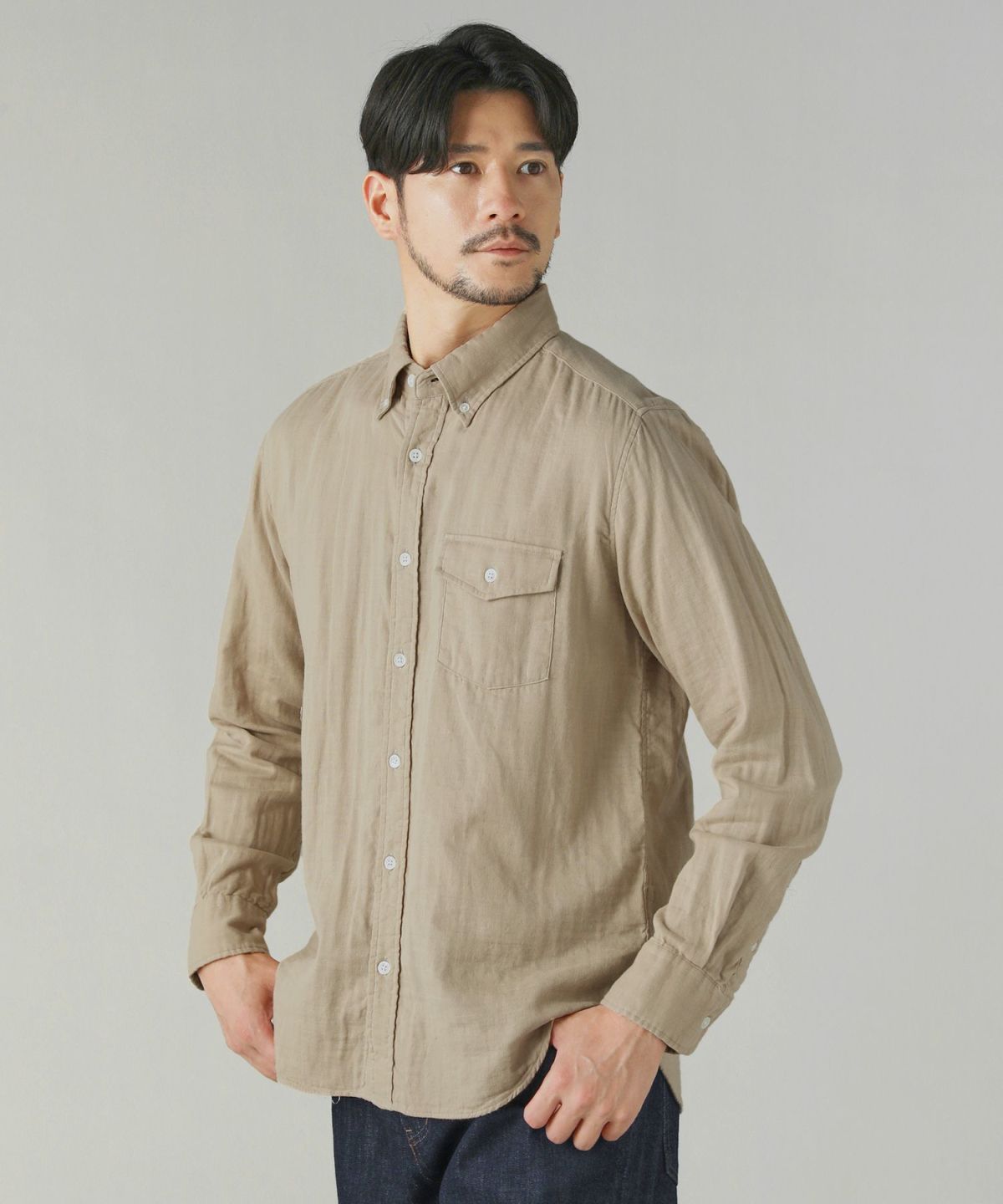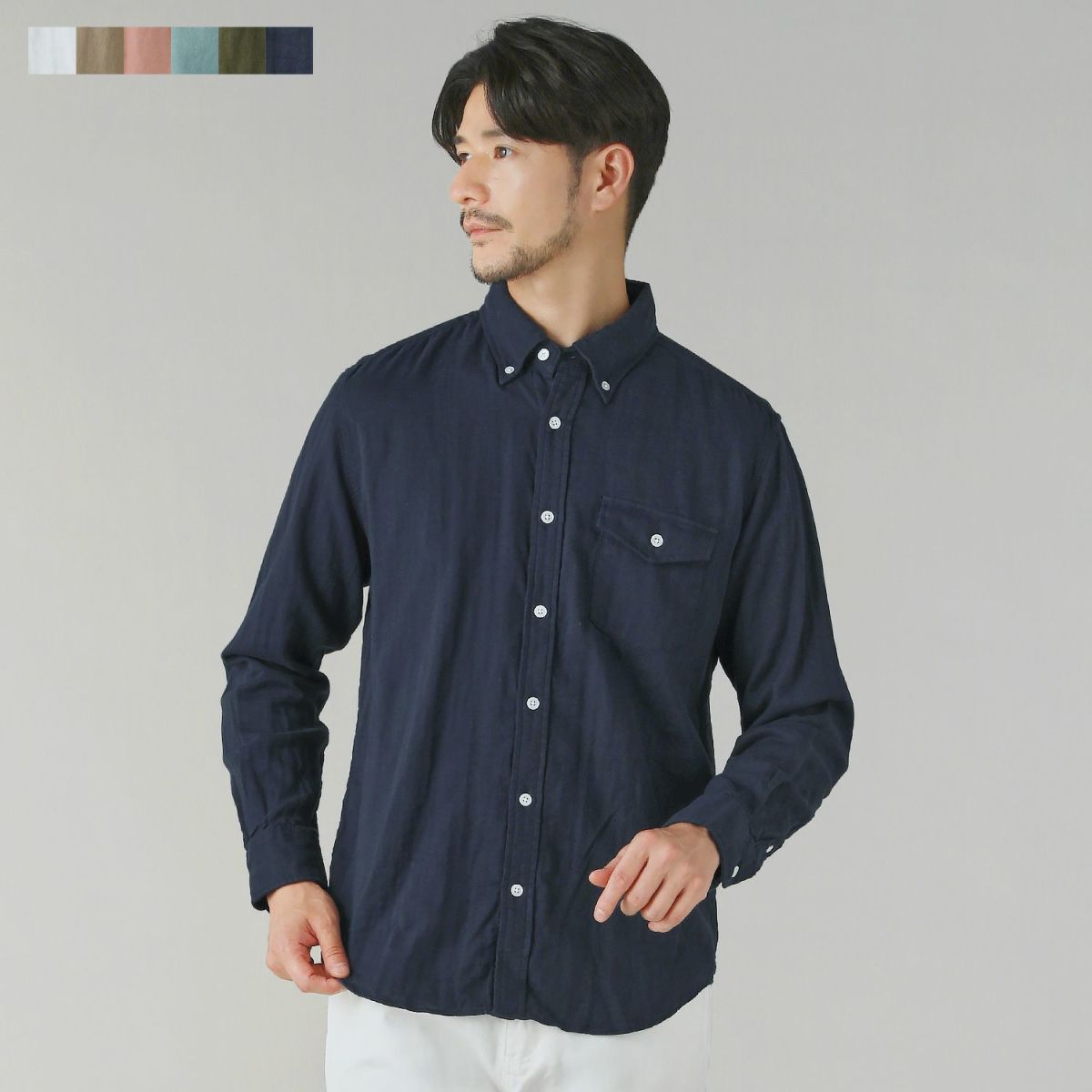日本製コットン100%ダブルガーゼボタンダウン長袖シャツ