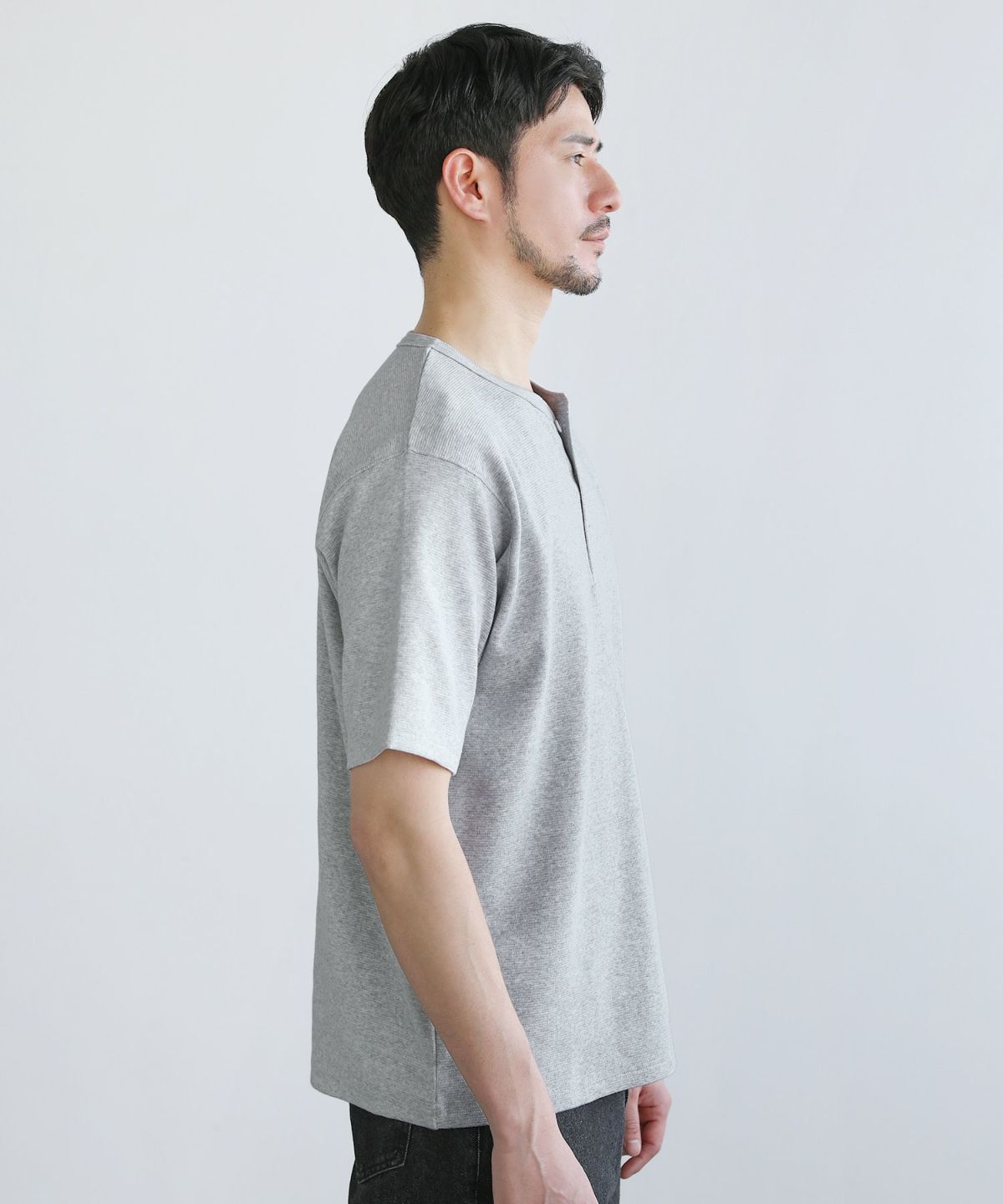 スパンフライス半袖ヘンリーネックカットソー