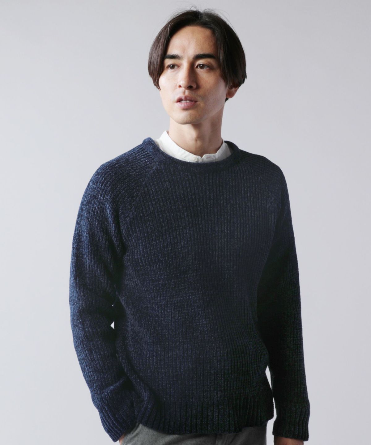 リブ編みモールクルーラグランニット