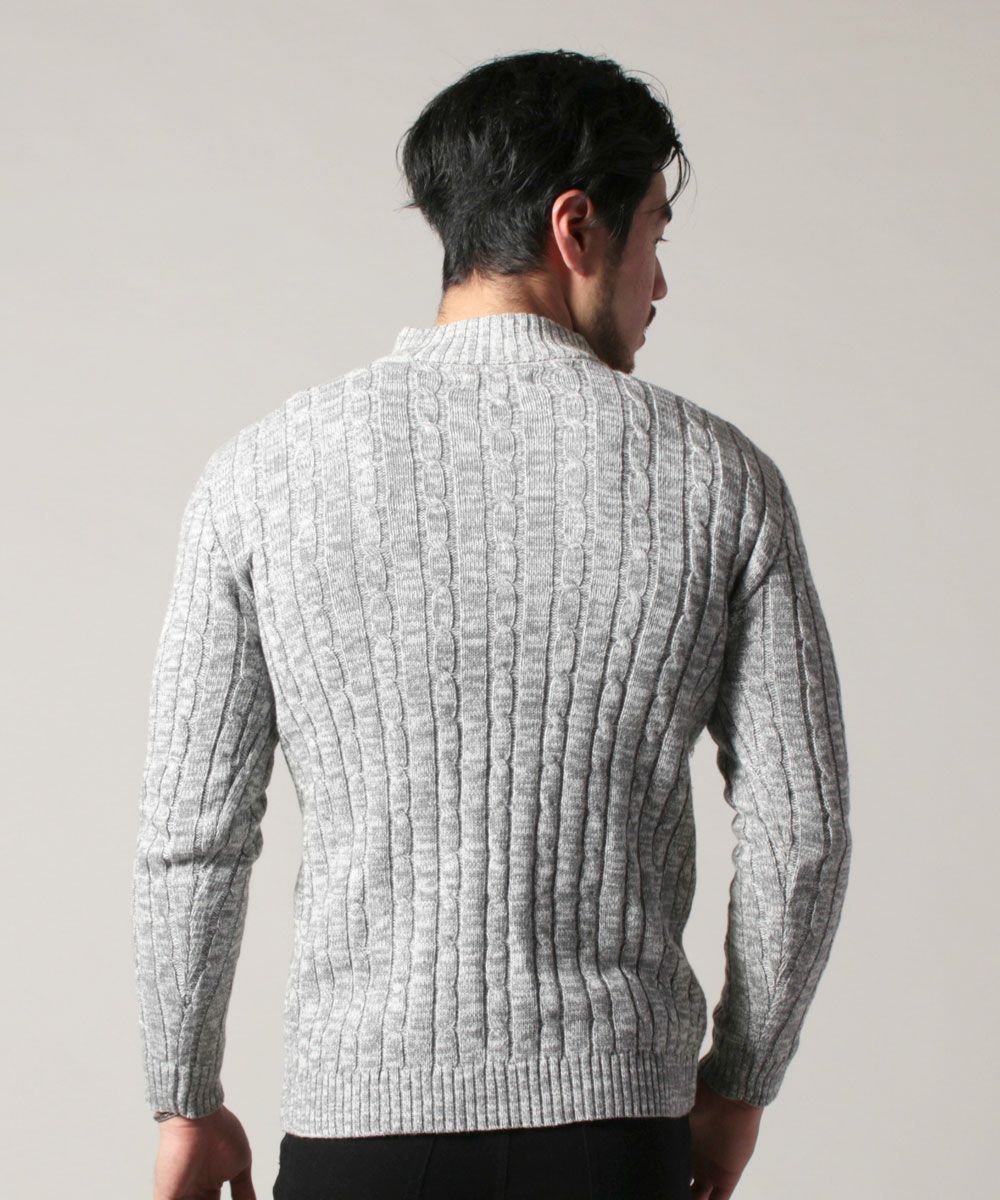 コットンケーブルニットジップアップハイネックジャケット