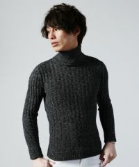 コットン100%バレンシアリブ編みタートルネックニット