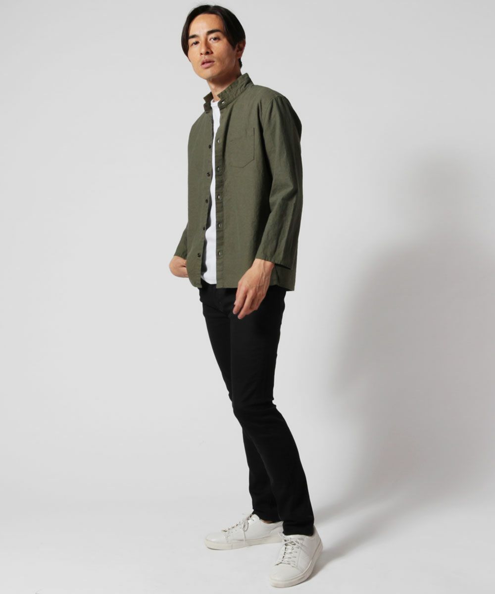 抗菌防臭付きオックスフォード長袖ボタンダウン/バンドカラーシャツ
