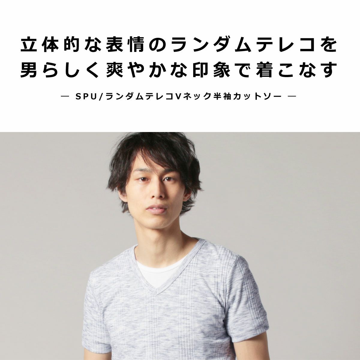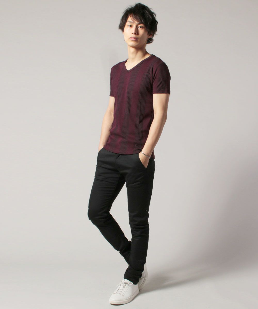 ランダムテレコVネック半袖カットソー