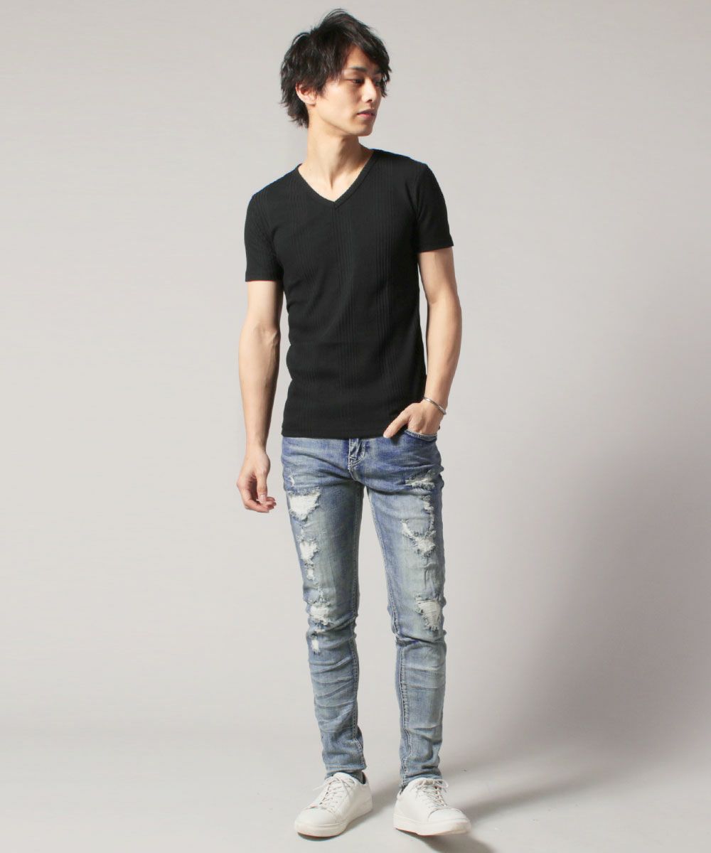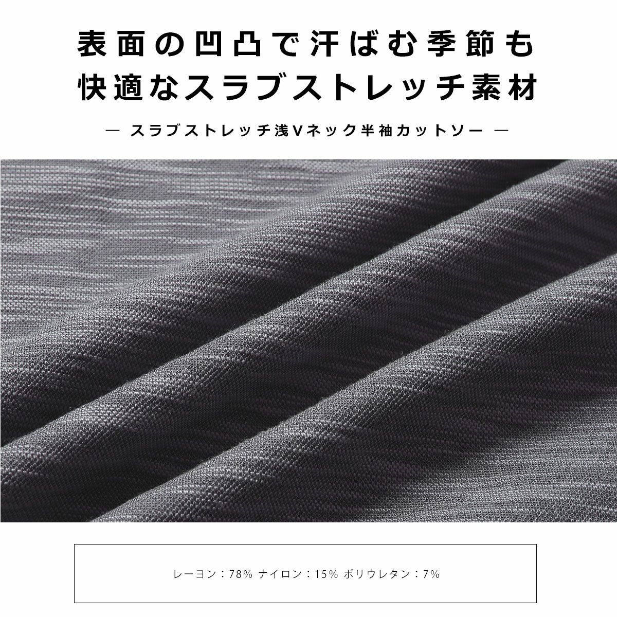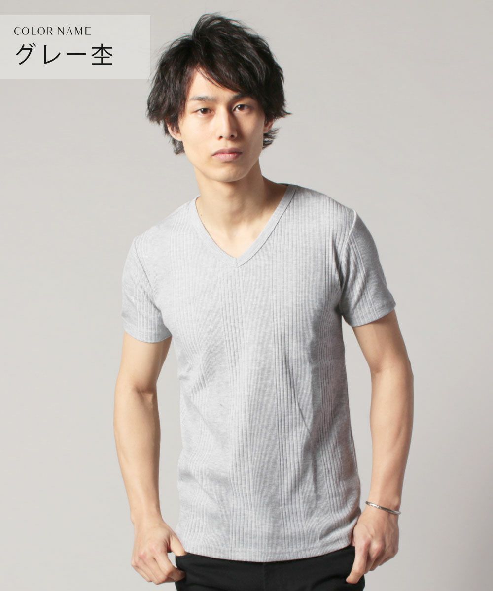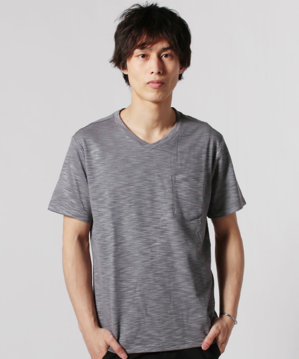 スラブストレッチ浅Vネック半袖カットソー