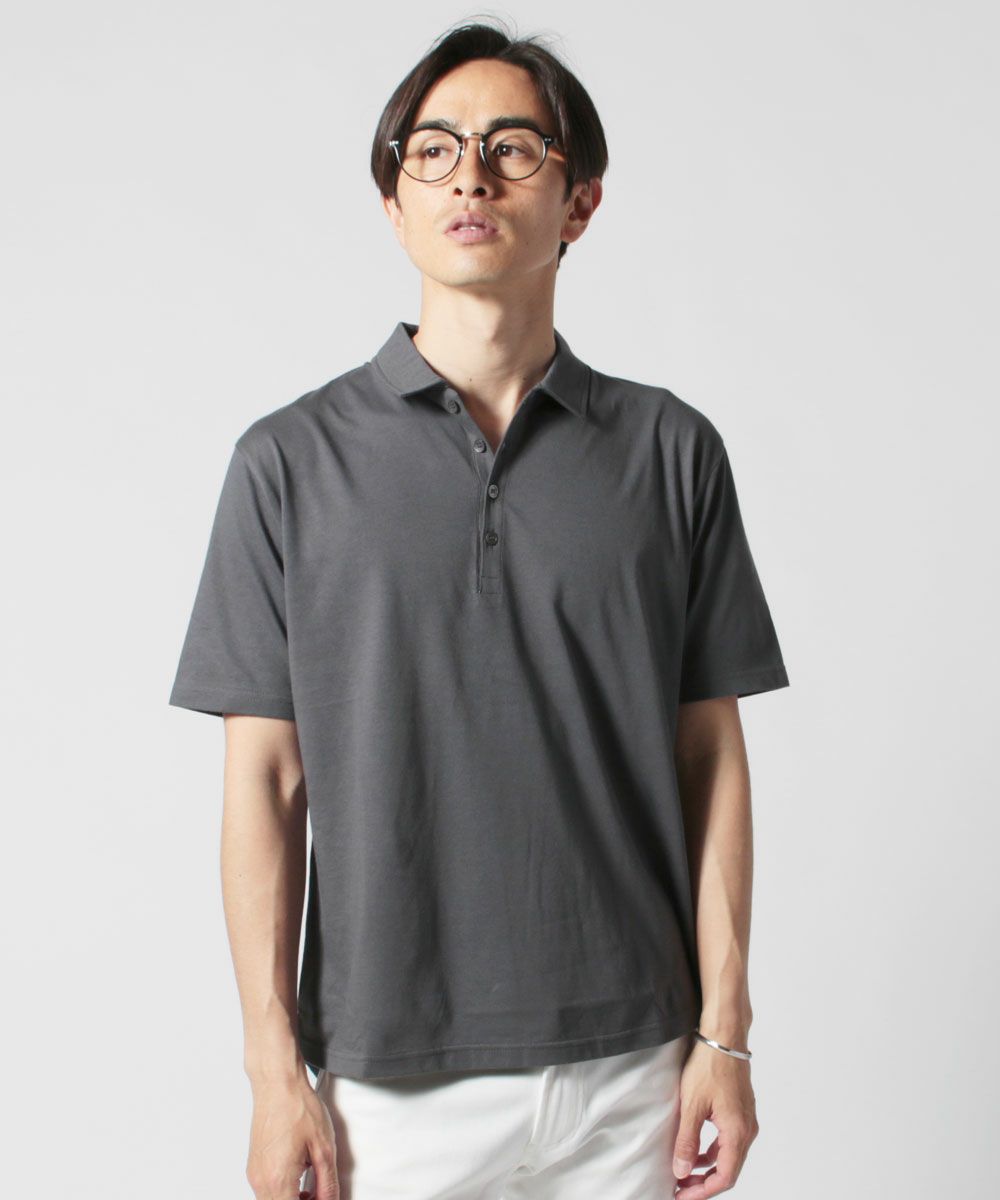 日本製30コーマ天竺ヘムラウンド半袖ポロシャツ