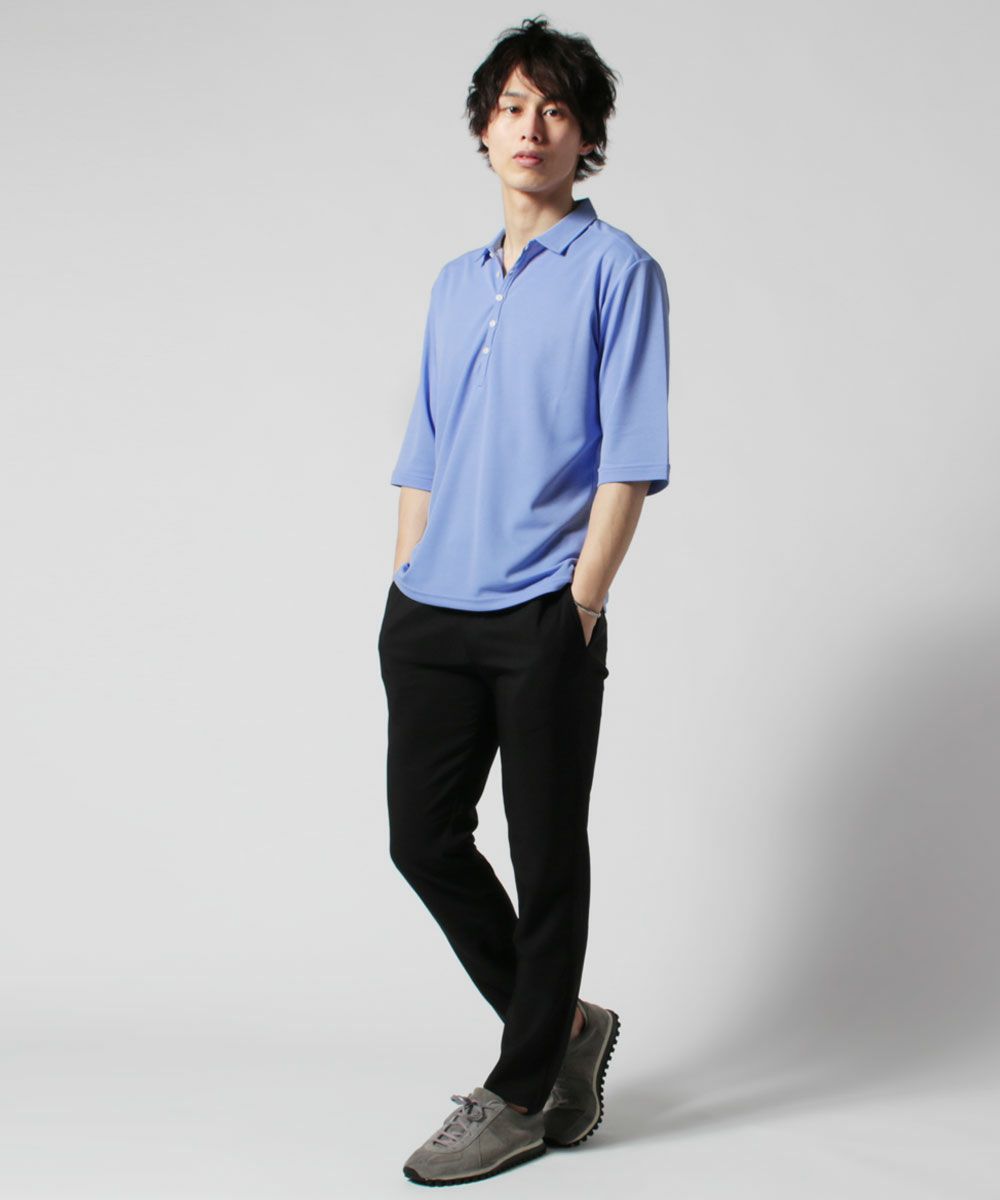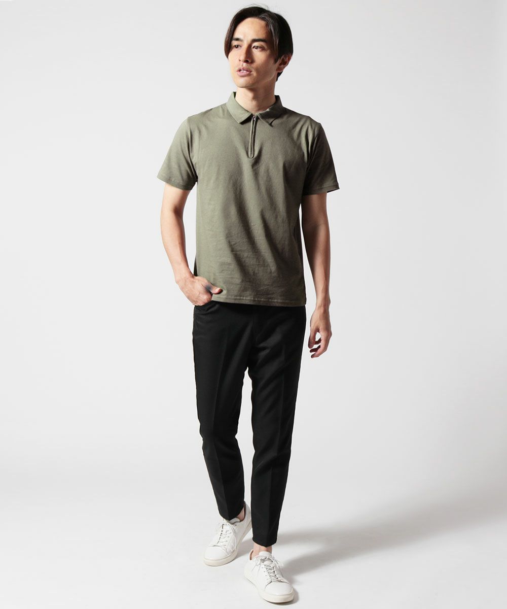 日本製30コーマ天竺ハーフZIP半袖ポロシャツ