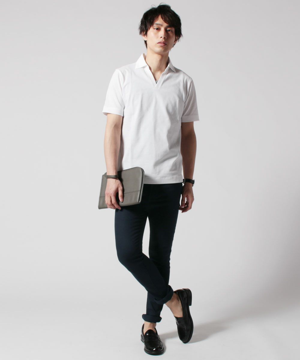 日本製30コーマ天竺Vネック半袖ポロシャツ
