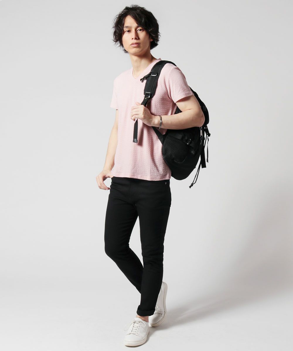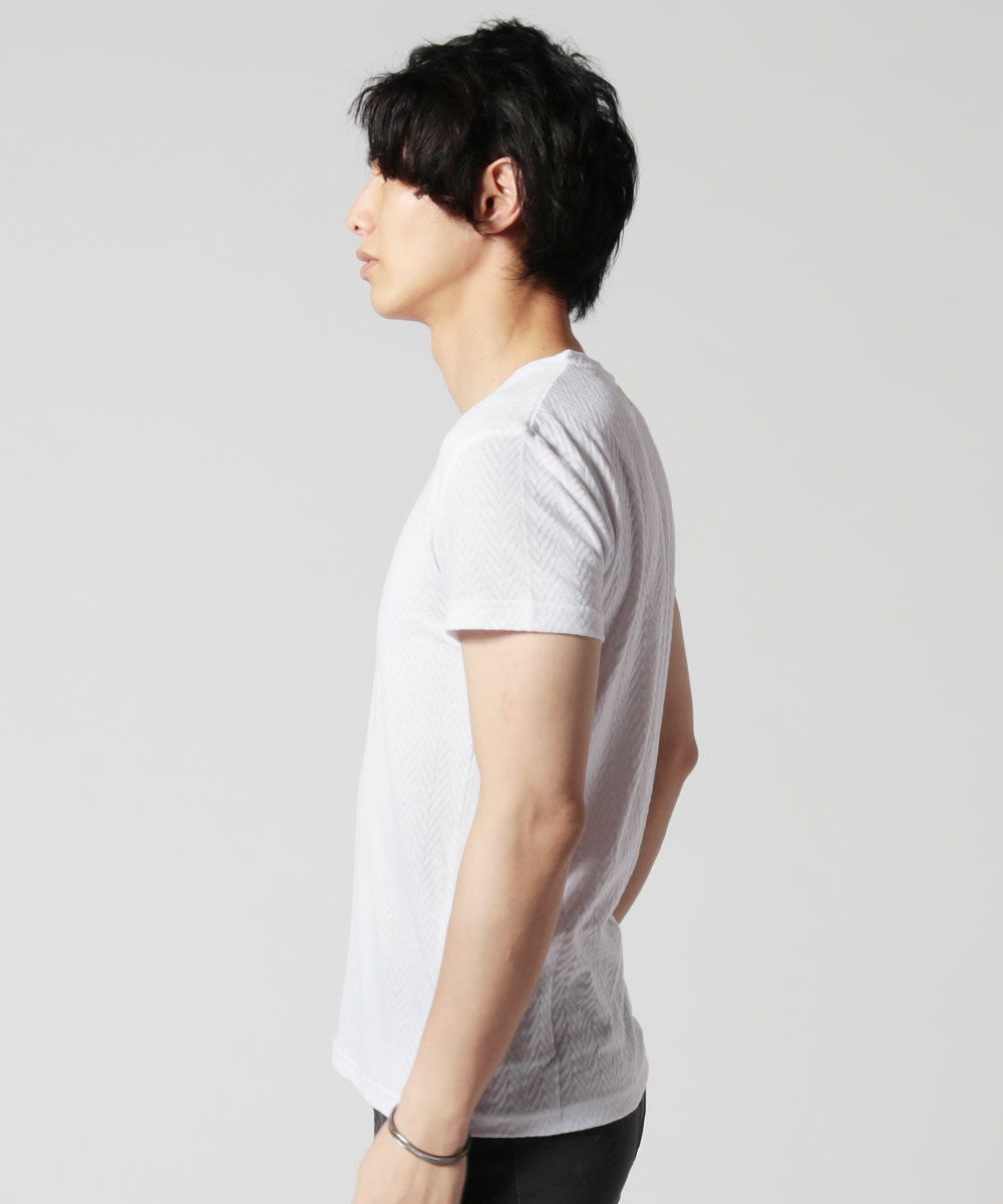 ヘリンボーンジャガードVネック半袖カットソー