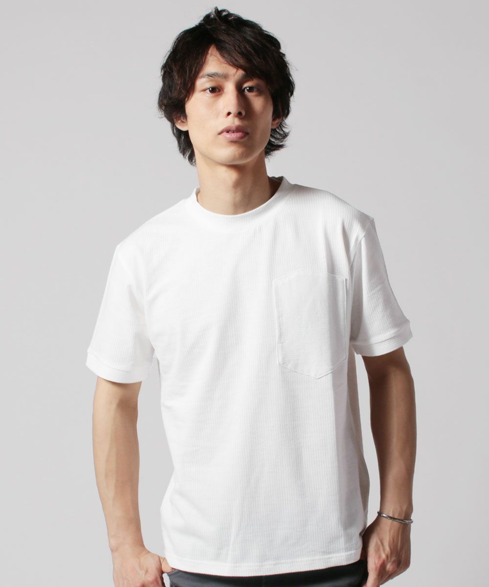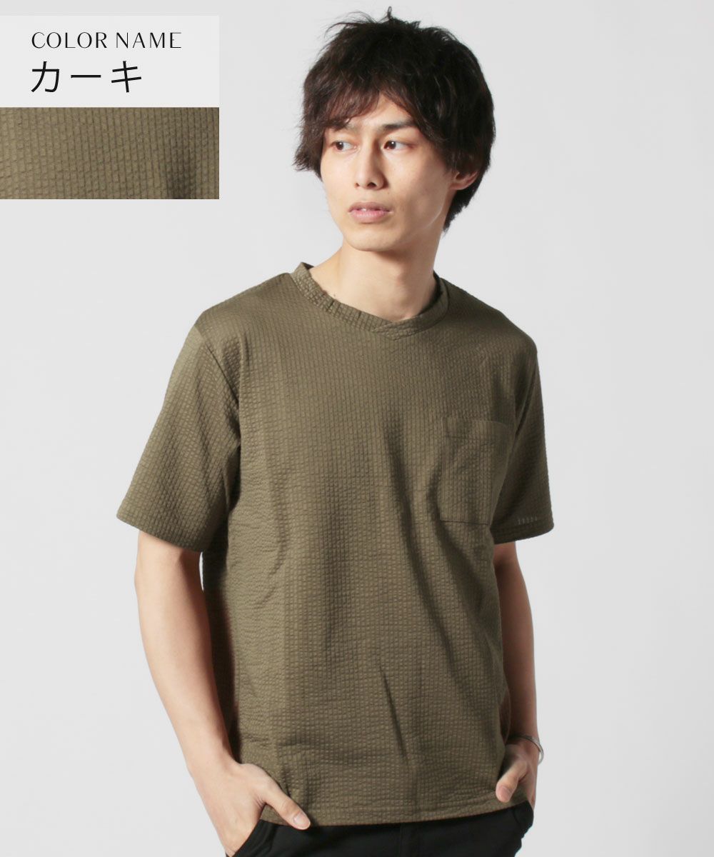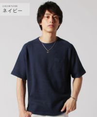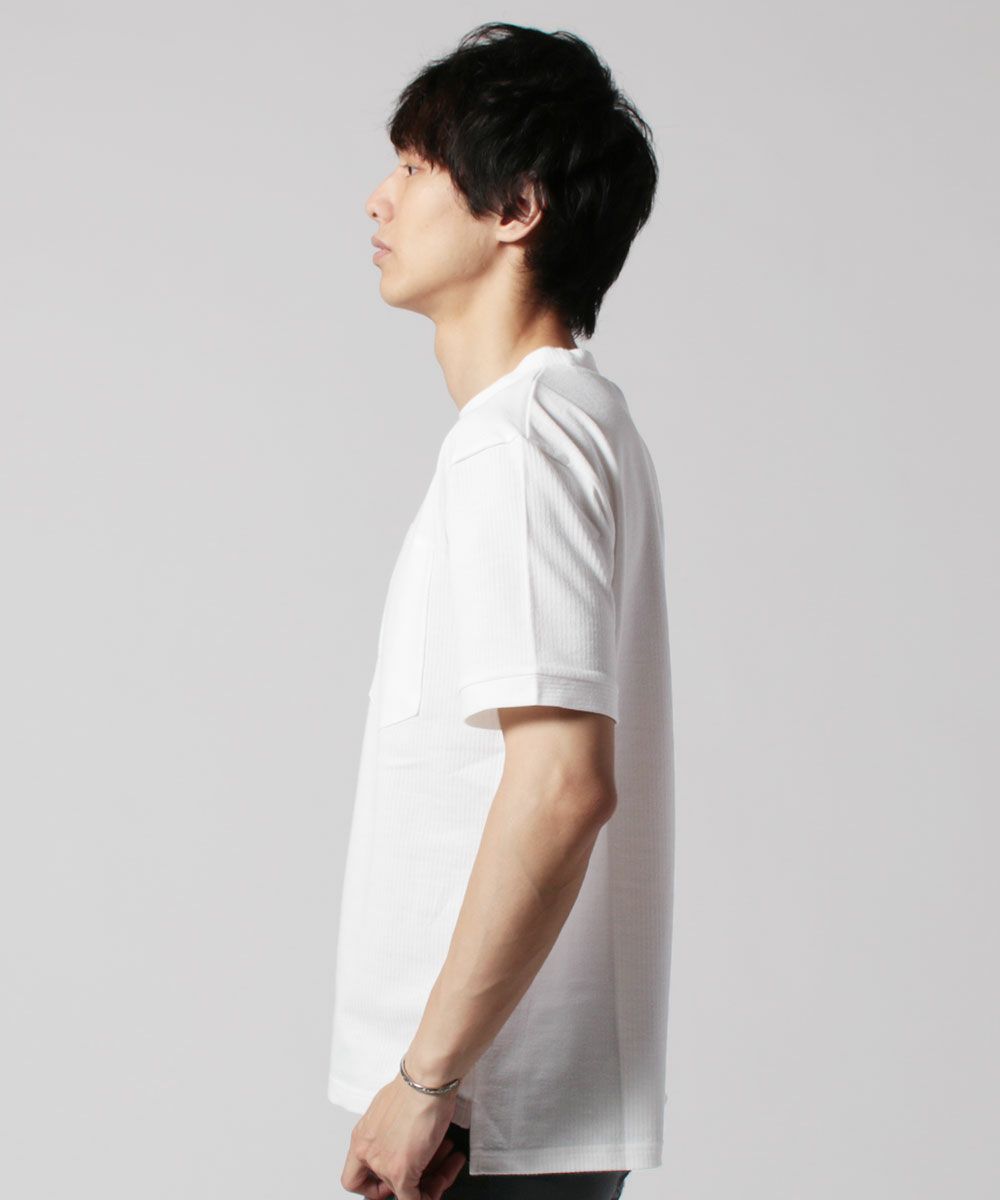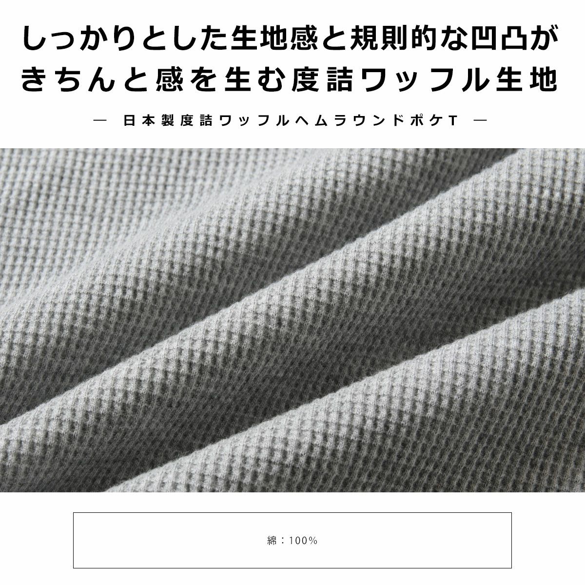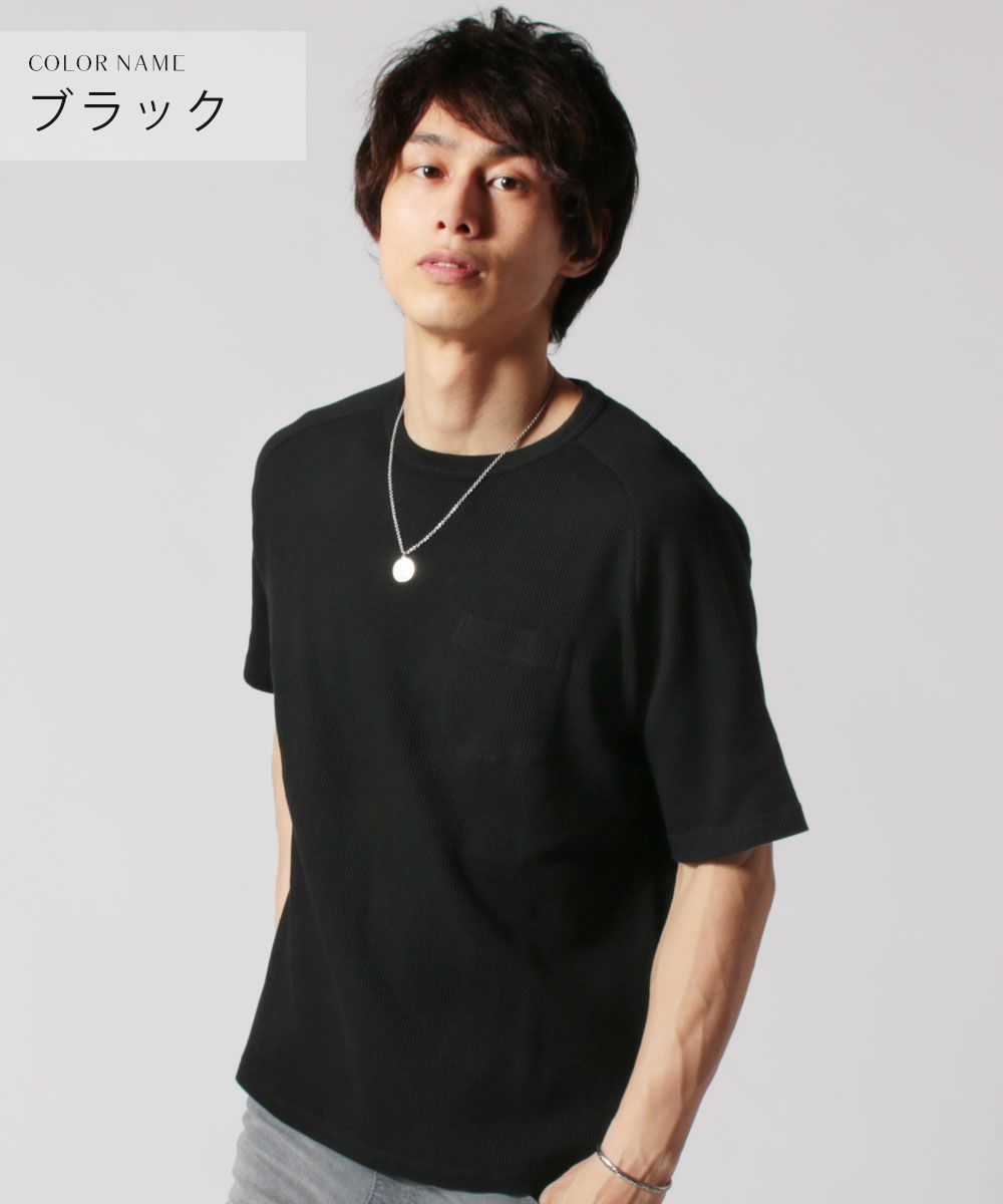 メンズ Tシャツ カットソー 国産 トップス 日本製 度詰 ワッフル ヘム ラウンド ポケT