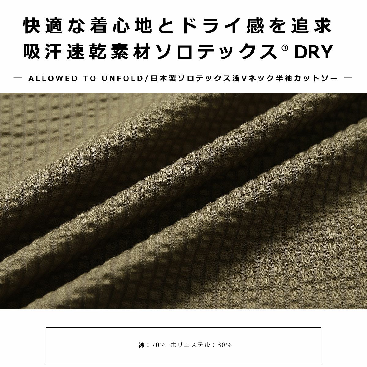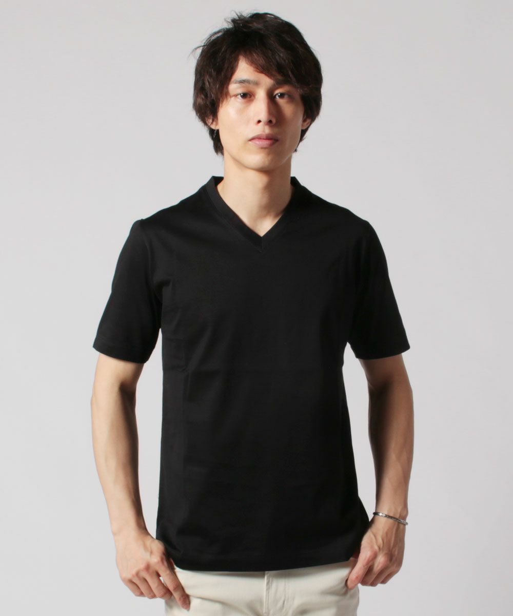 日本製ソロテックス浅Vネック半袖カットソー