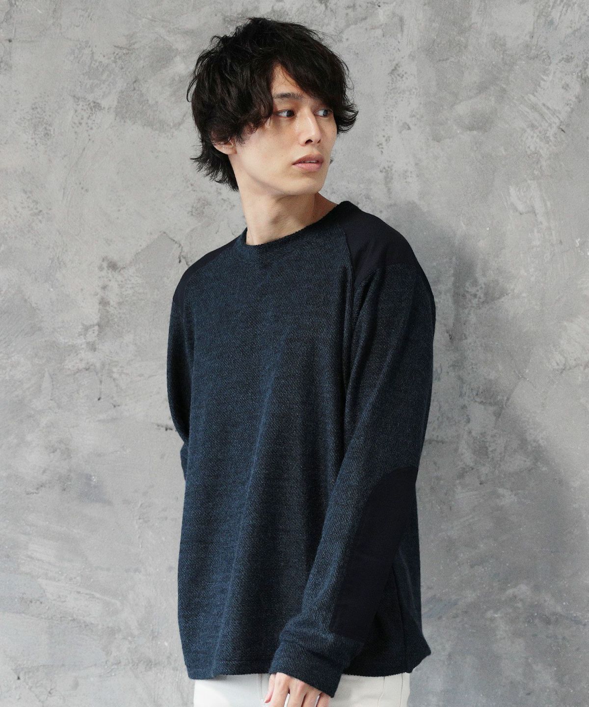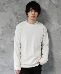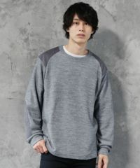 日本製ボンバーヒートハニカムサーマルスプリットスリーブクルーネックニット