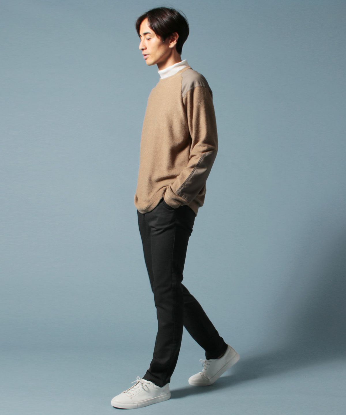 ミラノリブクルーネックニット×ロンTアンサンブル