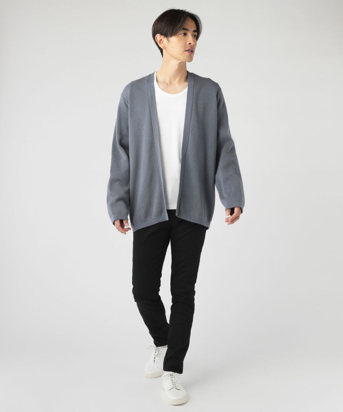 4WAYストレッチウォッシャブルボタンレスリブニット長袖カーディガン