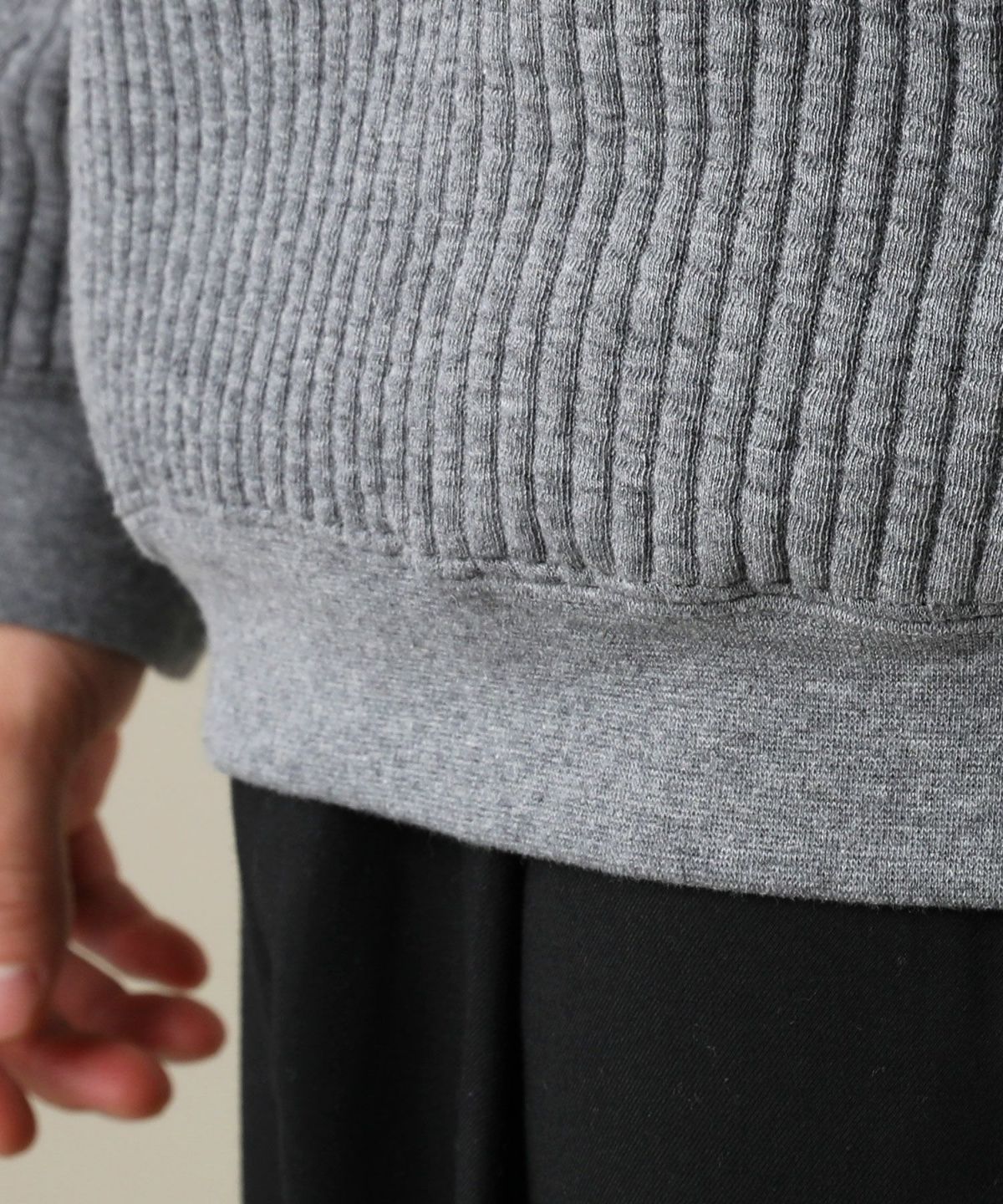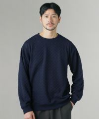 【セットアップ対応】日本製「尾州」コットンキルト エルボーパッチクルーネック長袖スウェット