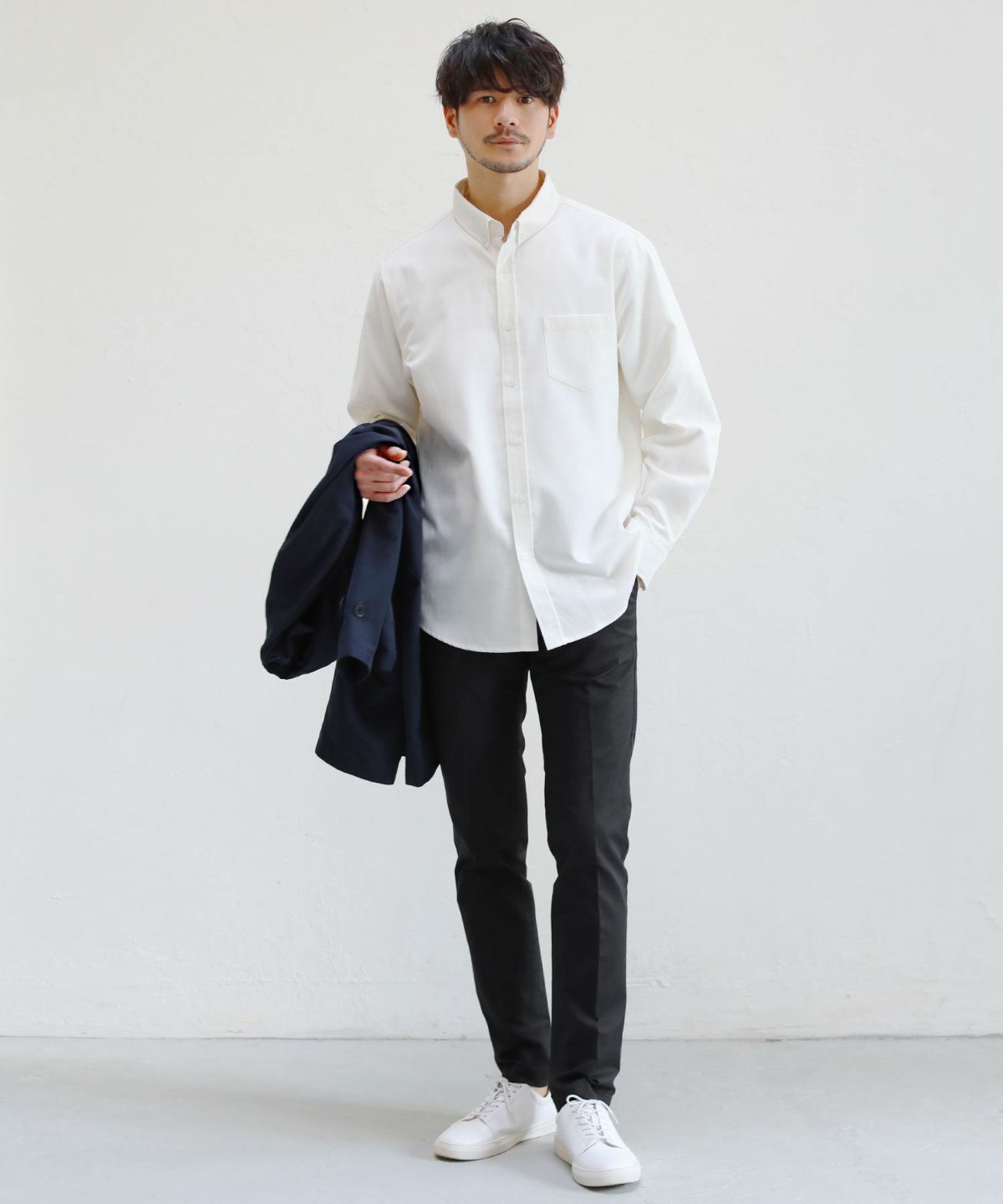 抗菌防臭付きオックスフォード長袖ボタンダウン/バンドカラーシャツ