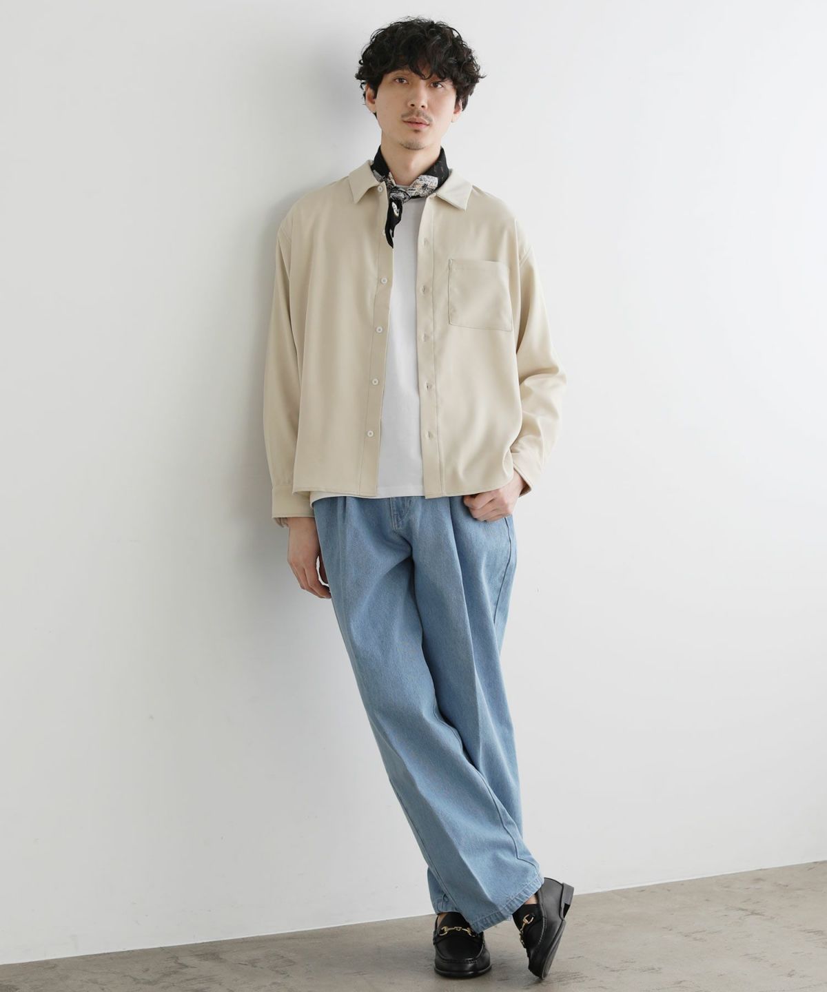 【セットアップ対応】テックエステルマルチポケットリラックスフィットスナップボタン長袖シャツ