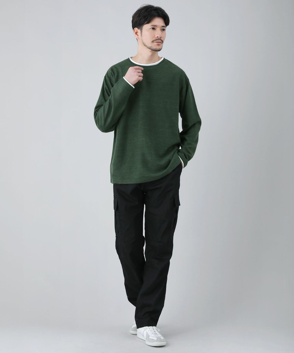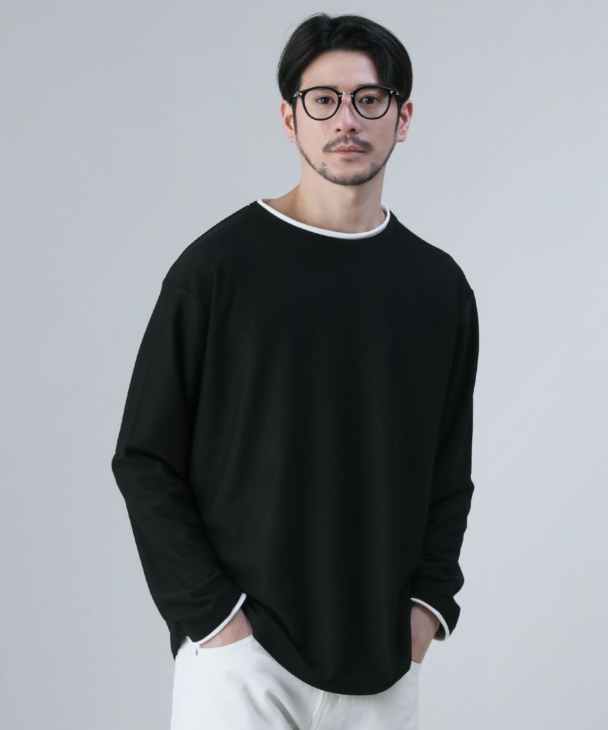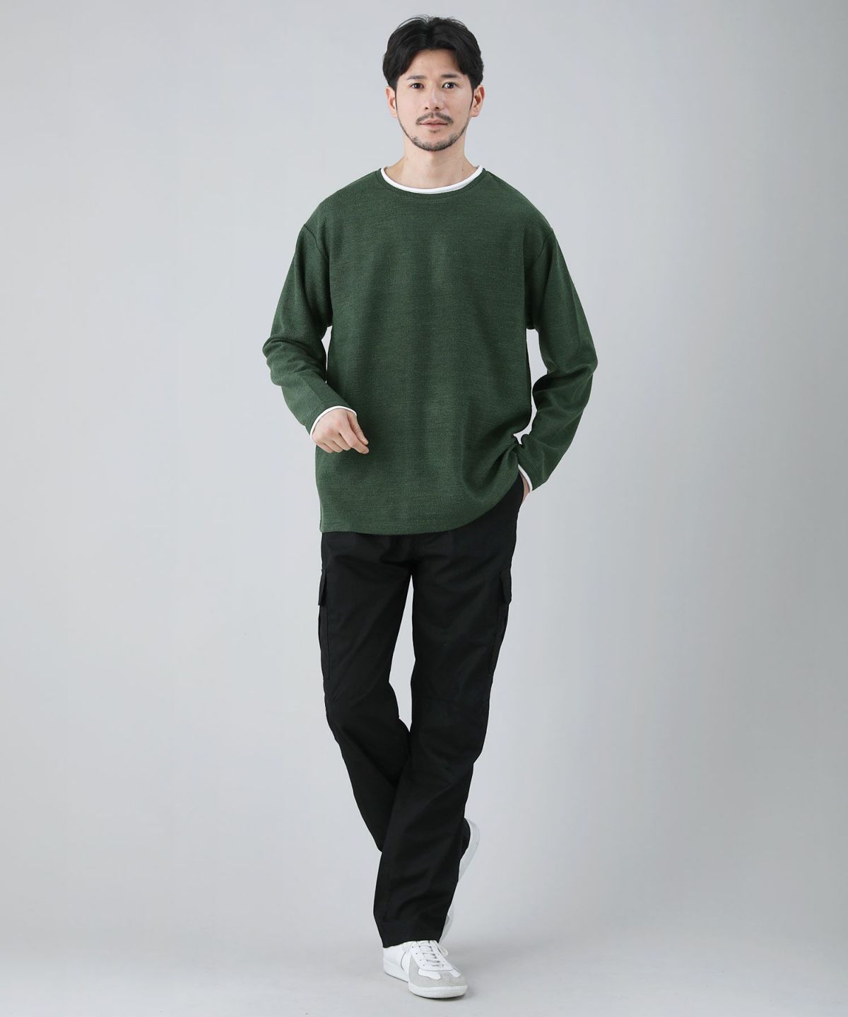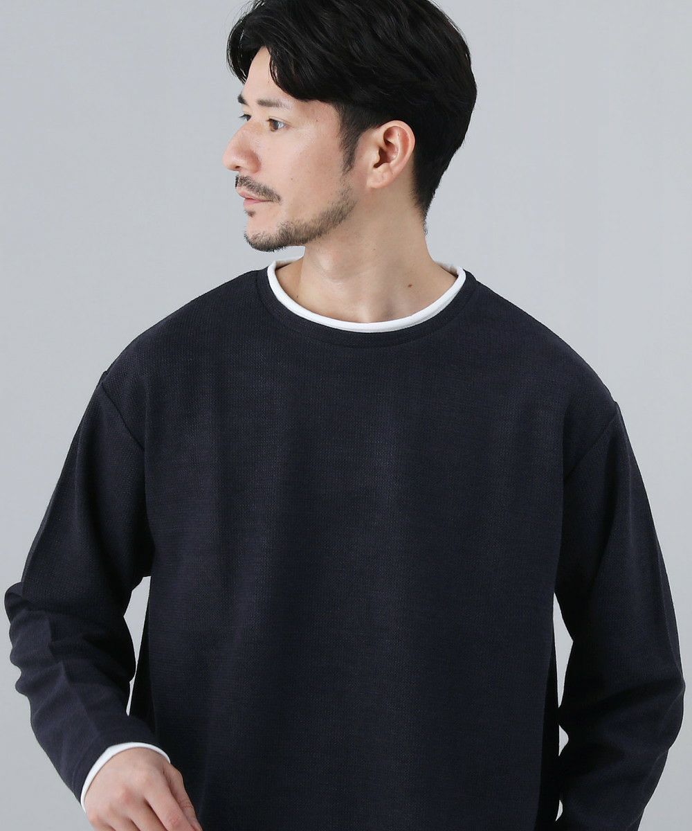 バスケットニットフェイクレイヤードクルーネック長袖カットソー