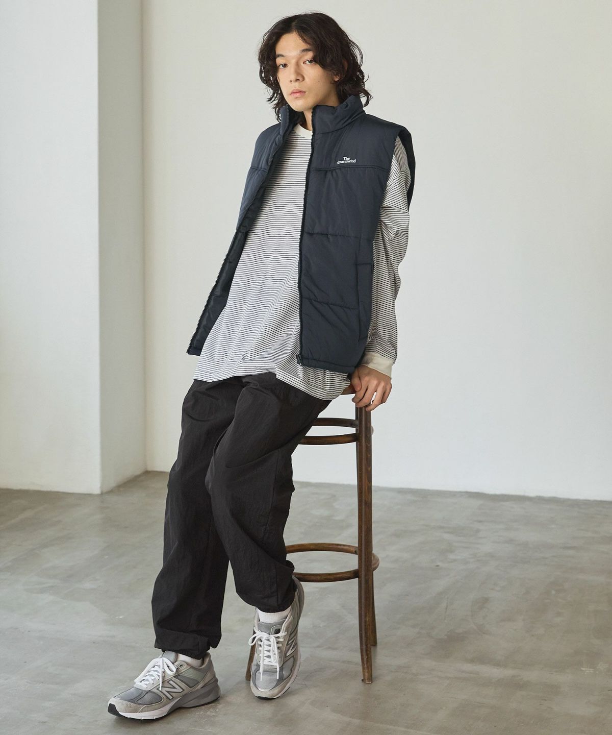 刺繍ロゴ 中綿キルティング裾ドローコードベスト