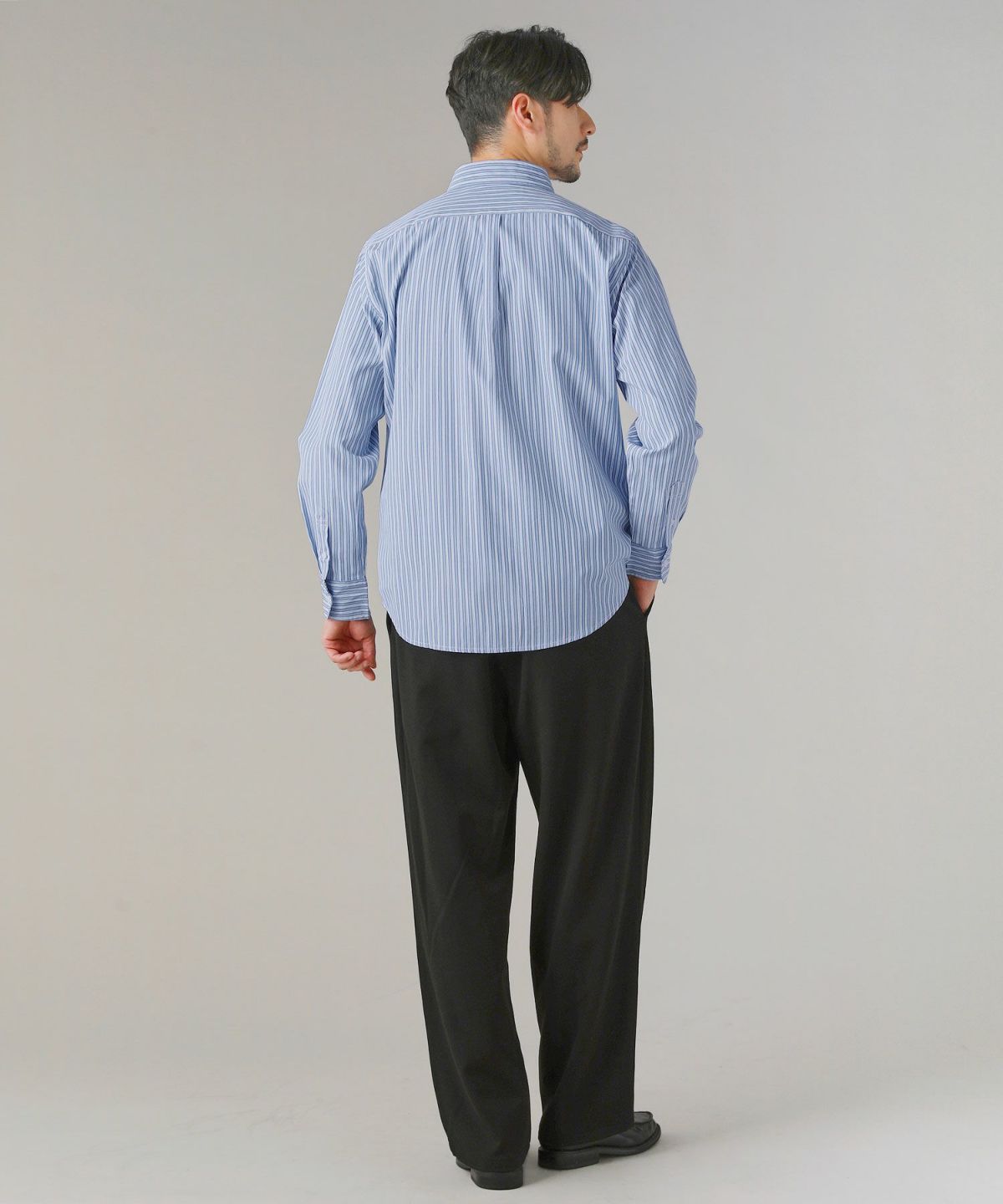 抗菌防臭付きブロード長袖ボタンダウン/バンドカラーシャツ