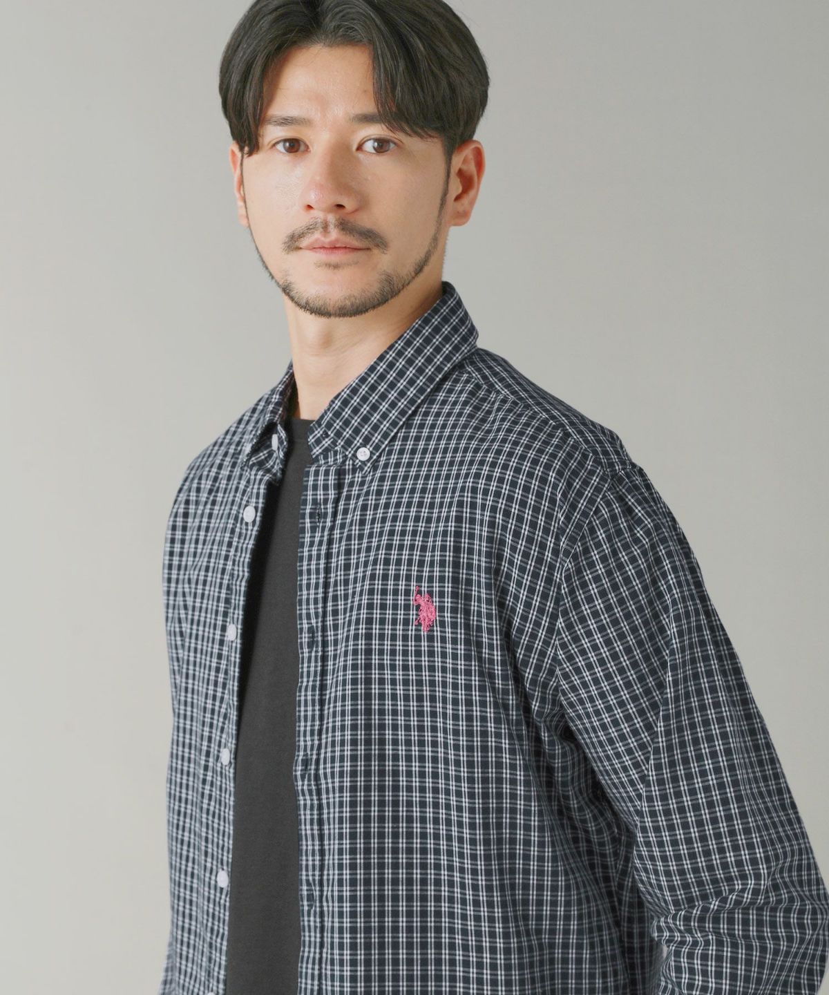 BEVERLY HILLS POLO CLUB ツイルピーチワンポイント刺繍ボタンダウンシャツ