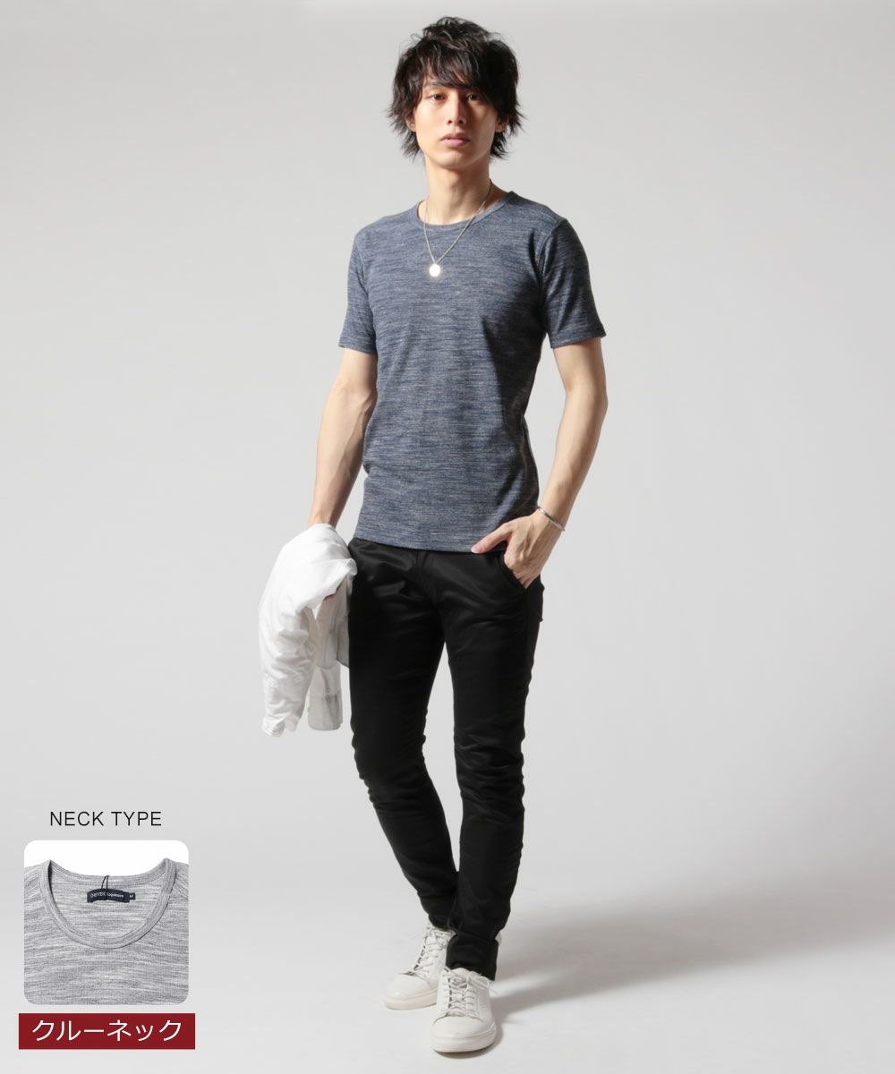 トリッキーヘザーフライスVネック/クルーネック5分袖カットソー