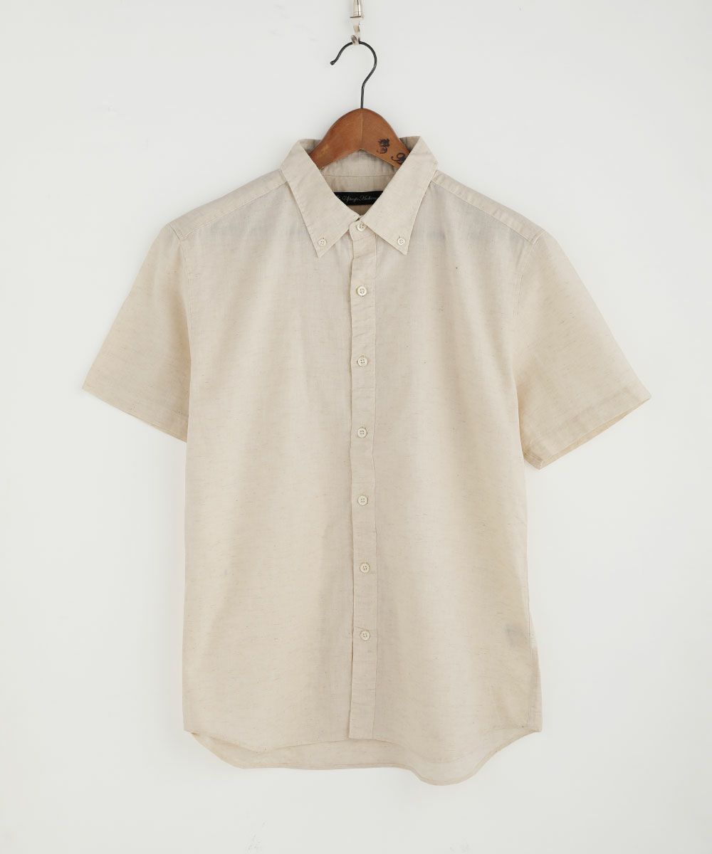ムジ麻100%レギュラー半袖ボタンシャツ