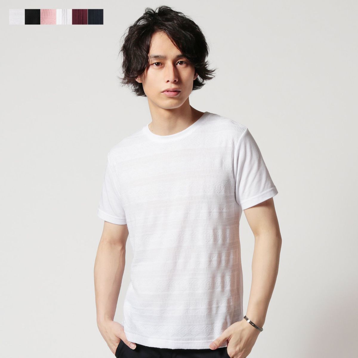 前身切り替えジャガードクルーネック半袖カットソー