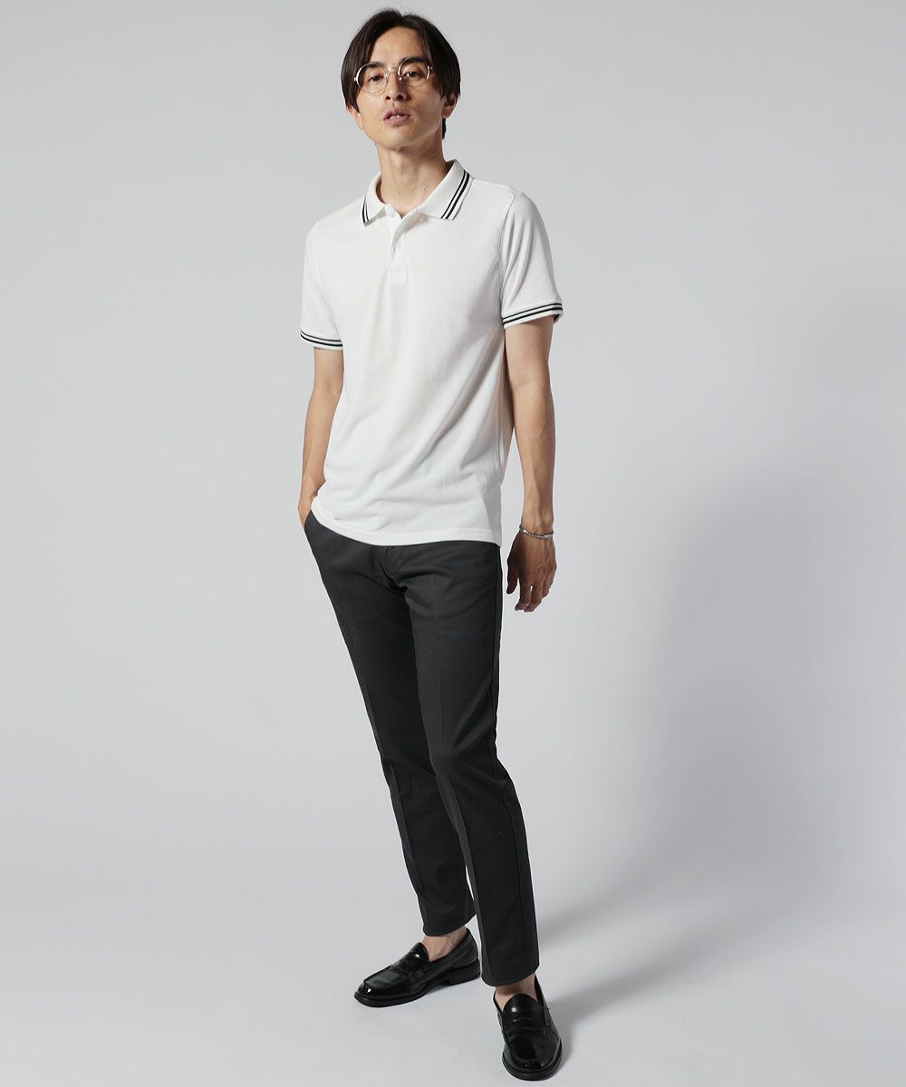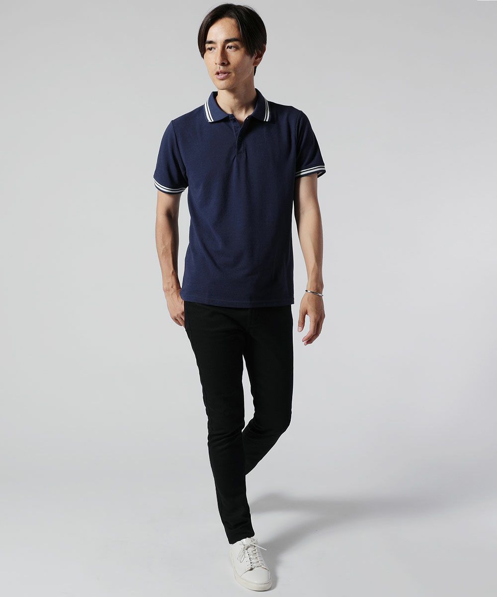 無地/ライン鹿の子ポロシャツ