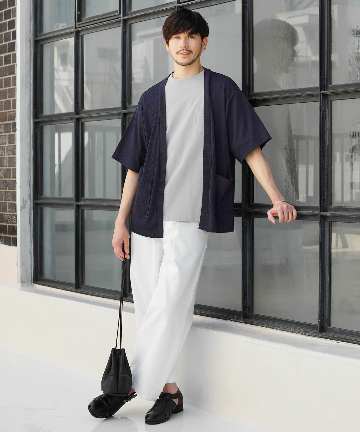 針抜きリブ編み半袖カーディガン