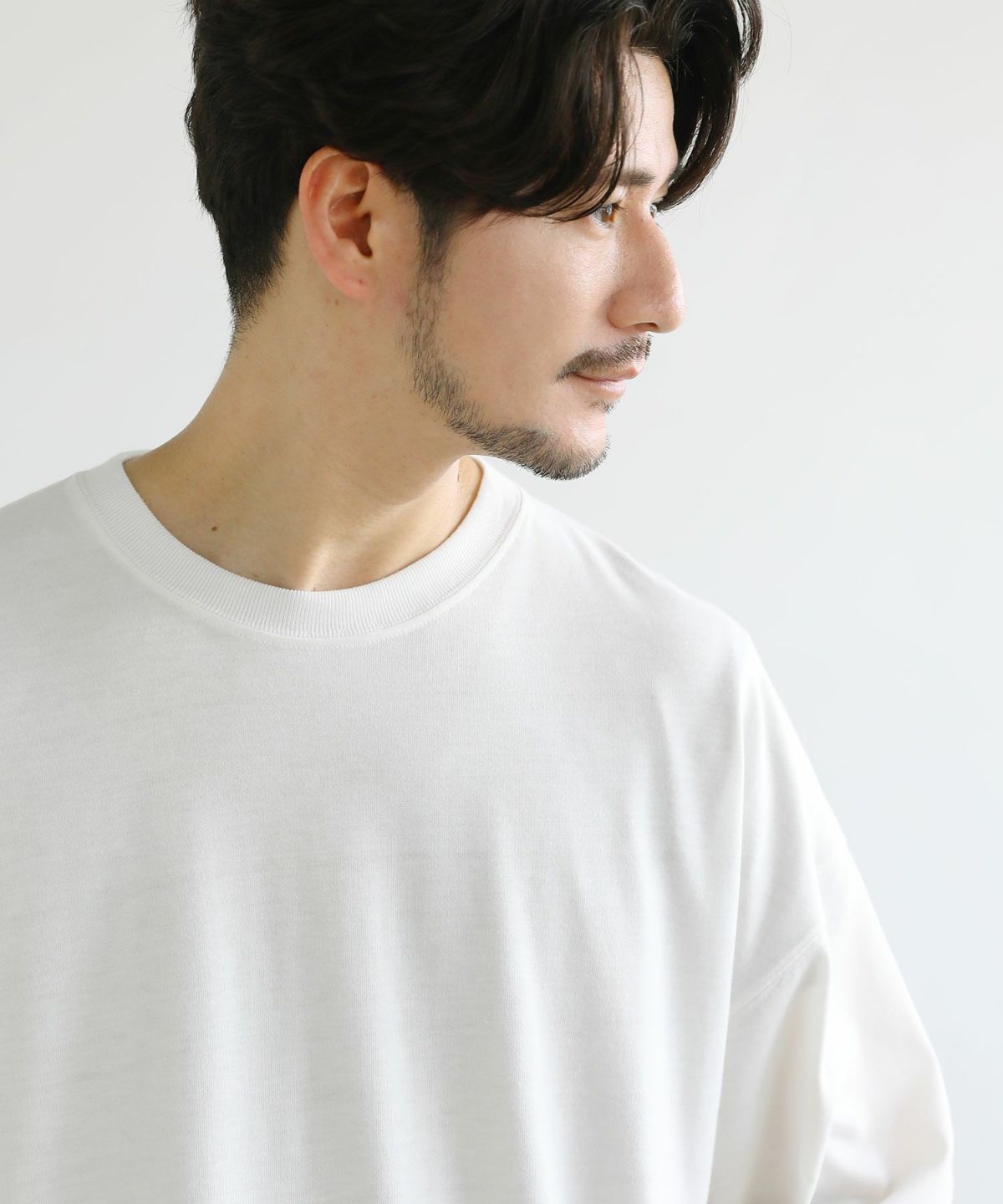 日本製スーパー度詰め天竺半袖ビッグレイヤードキーネックTシャツ