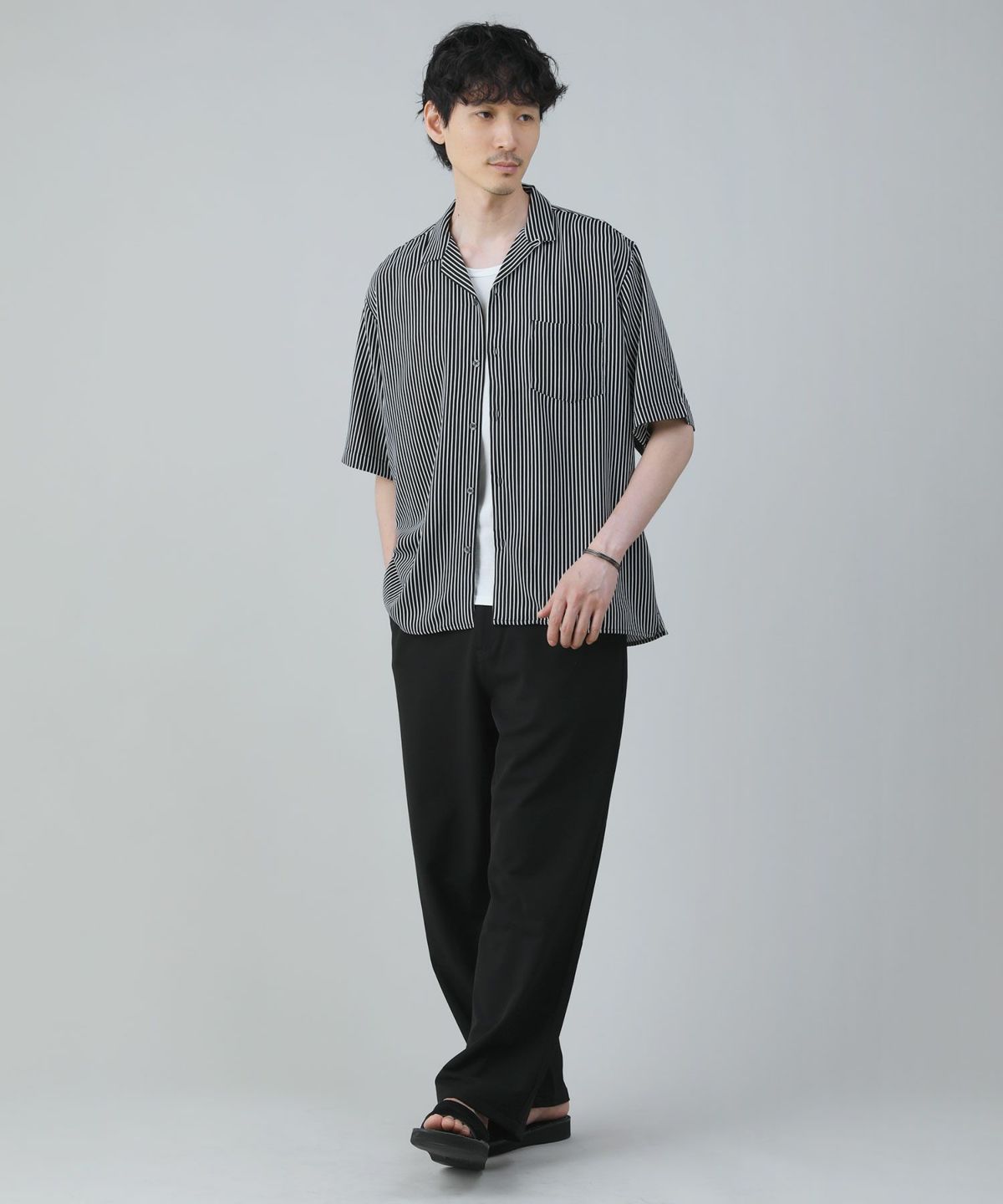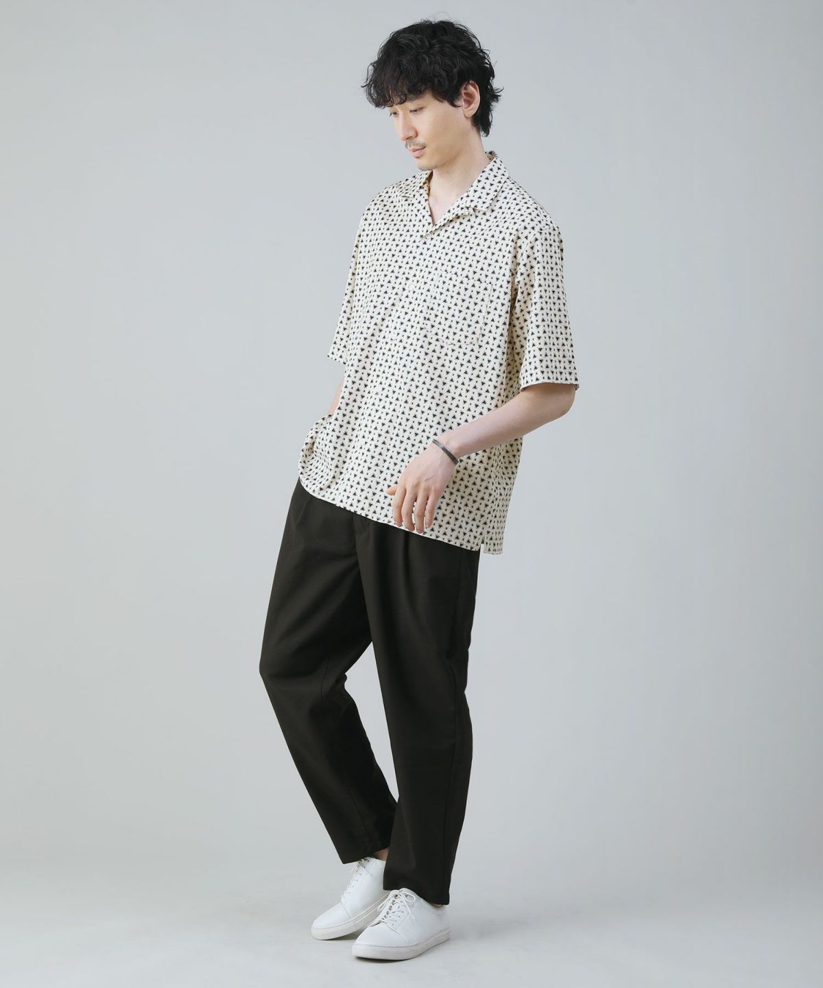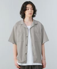 ポリコットンパイルリラクシング半袖オープンカラーシャツ