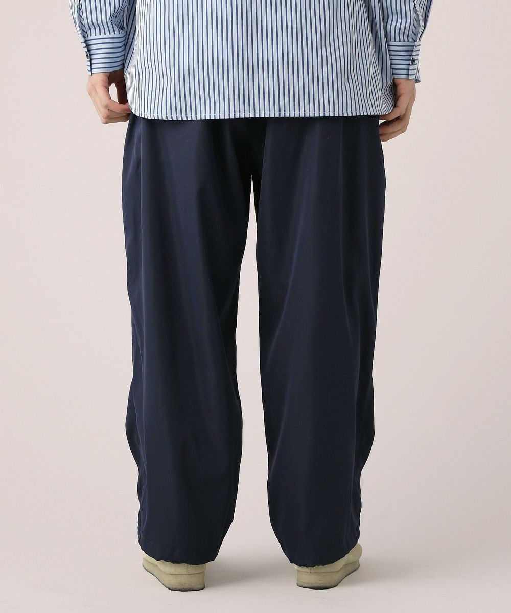 ストレッチ性のある綿ライクなポリエステルツイルを使用し、リラックス感のあるシルエットに仕上げました。 ポリエステル素材なので、ご自宅でのイージーケアが可能。 同素材のジャケットとのセットアップスタイルもおすすめです。