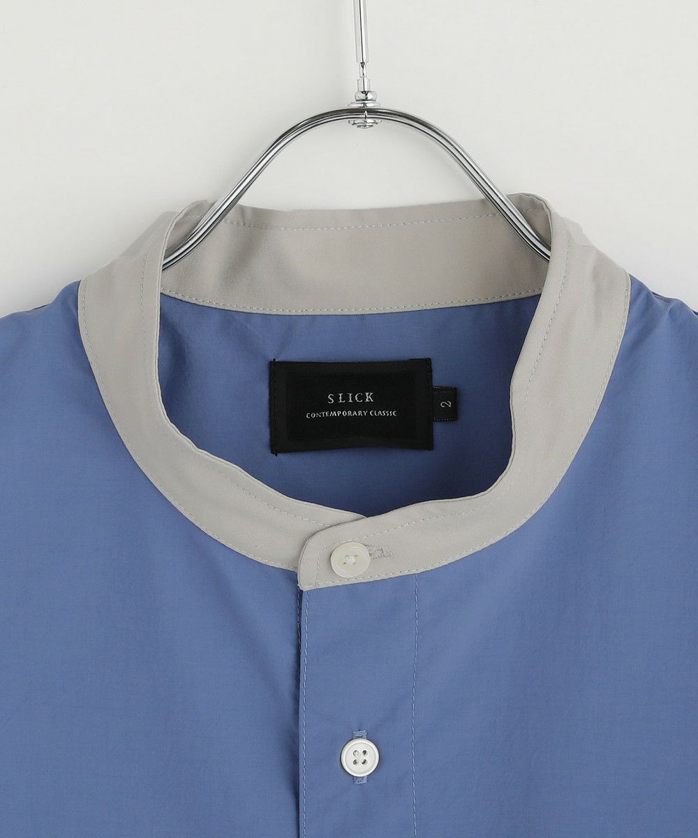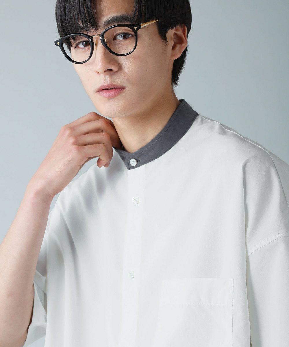 クレリック襟の配色がアクセントになった半袖バンドカラーシャツ。 肩を落としたドロップショルダーデザインで、こなれ感たっぷりの雰囲気を作り出します。 丈夫になるよう脇の縫い目は折伏せ縫いに、さらに運針の細かなステッチを採用するなど、縫製にもこだわったアイテムです。