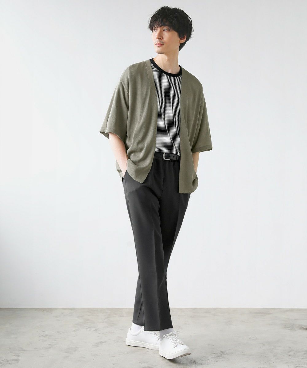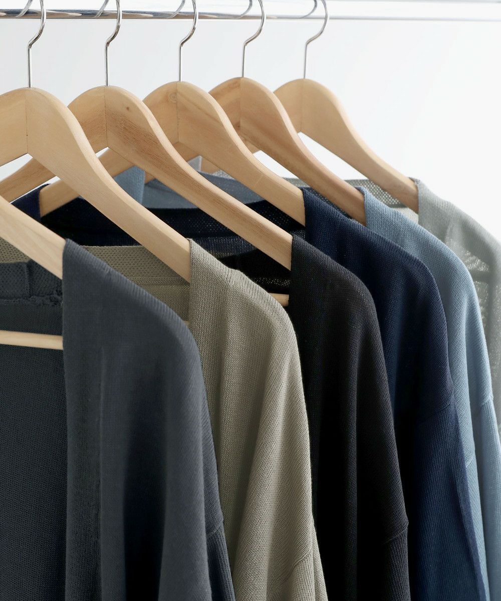 リネンタッチで清涼感のあるボタンレスカーディガンです。