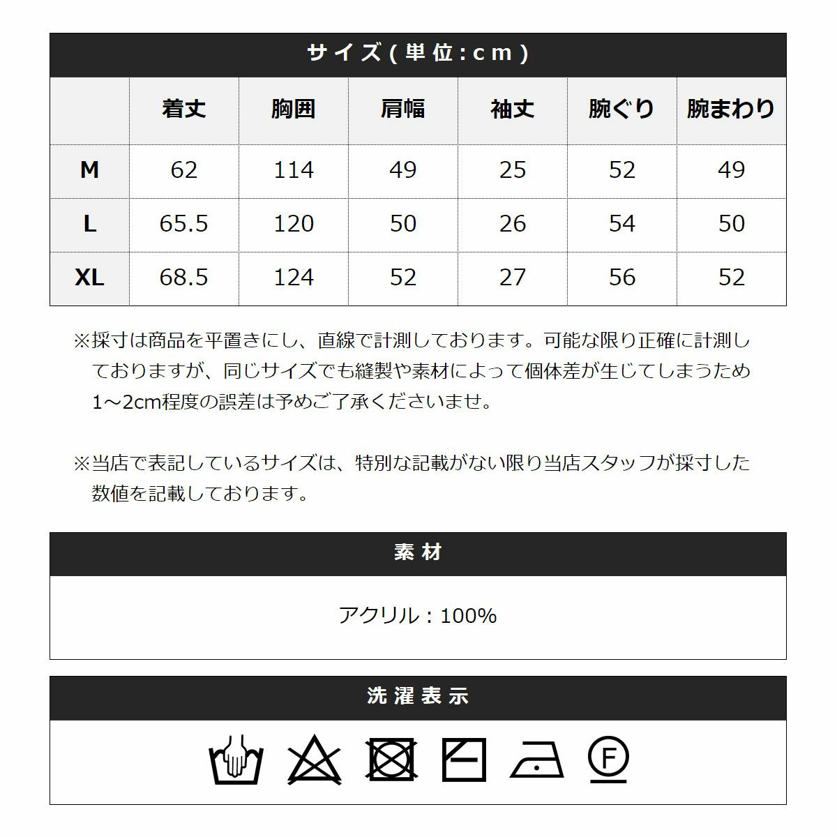 ※商品特性、縫製や素材により同サイズでも、若干の誤差が生じてしまうことを予めご了承ください。