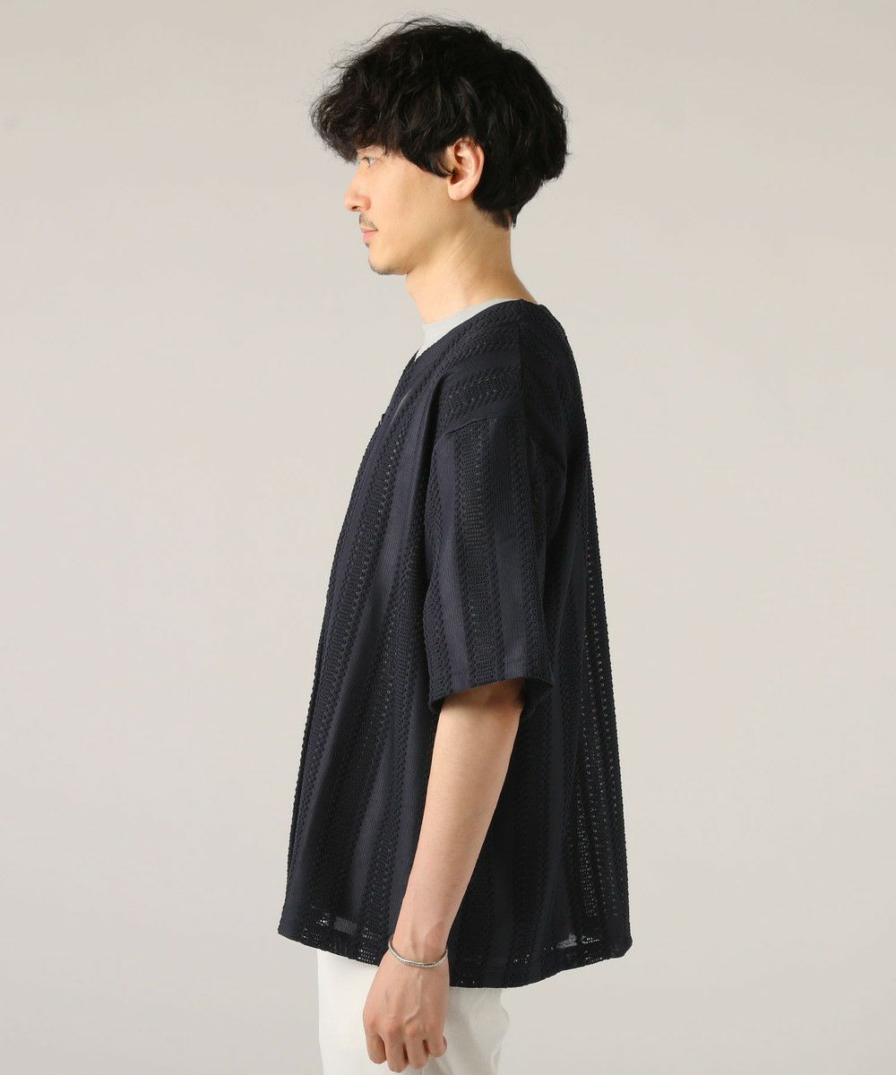 夏の羽織りとして無地Tシャツに上から羽織るだけで主役級の存在感があるアイテムとなっています。 軽い着心地と、重ね着をしても窮屈にならないシルエットもポイントです。