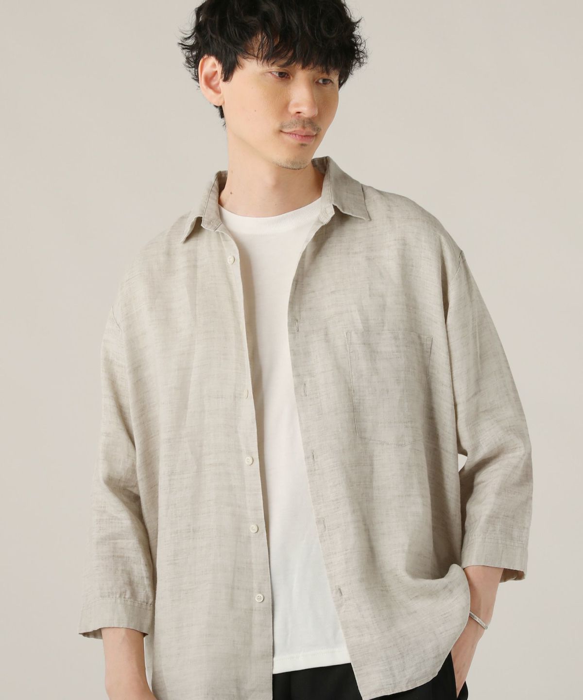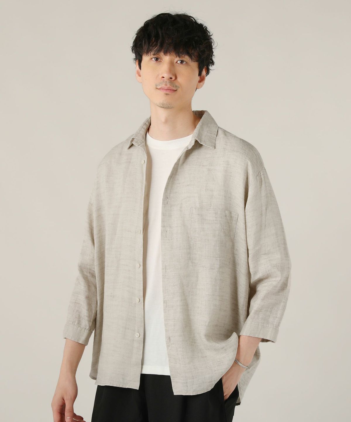 涼し気な印象を作る麻100%の七分袖シャツです。