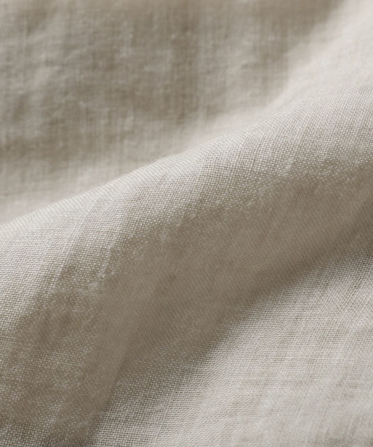 天然素材ならではのナチュラルな質感と通気性が魅力的な麻100%の生地。一般の麻素材よりも薄手で柔らかく、ごわつき感がないので肌へのストレスもありません。